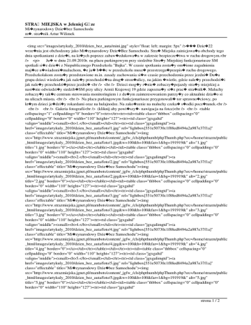 STRA� MIEJSKA w Jeleniej G�ze Mi�zynarodowy Dzie�bez Samochodu m�. stra�nik Artur Wilimek <img src="images/artykuly_2010/dzien_bez_auta/mini.jpg" style="float: left; margin: 5px" />��� Dzie�22 wrze�nia jest obchodzony jako Mi�zynarodowy Dzie�Bez Samochodu. Stra� Miejska zainicjowa�a obchody tego dnia spotkaniami z dzie�i, na kt�ych poprzez zabaw�edukowa�a w zakresie bezpiecze�twa w ruchu drogowym.<br /> <p> Ju� w dniu 21.09.2010r. na placu parkingowym przy siedzibie Stra�y Miejskiej funkcjonariusze SM spotkali si�z dzie�i z Niepublicznego Przedszkola "Bajka". W czasie spotkania zosta�y om�ione zagadnienia maj�ce u�wiadomi�maluchom, �e ju� b��c w przedszkolu musz� przestrzega�przepis� ruchu drogowego. Przedszkolakom zosta�y przedstawione m.in. zasady zachowania si�w czasie przechodzenia przez jezdni� Du�a grupa dzieci wiedzia�a jak nale�y przechodzi�na drug� stron�ulicy, na jakim �wietle, gdzie nale�y przechodzi�i jak nale�y przechodzi�przez jezdni� <br /> <br /> Dzieci mog�y r�nie� zobaczy�pojazdy stra�y miejskiej a nast�nie odwiedzi�y siedzib�SM przy ulicy Armii Krajowej 19 gdzie zapozna�y si�z prac� stra�nik�. Maluchy zobaczy�y tak�e centrum sterowania monitoringiem i z du�ym zainteresowaniem patrzy�y co aktualnie dzia�o si na ulicach miasta. <br /> <br /> Na placu parkingowym funkcjonariusze przygotowali� tor sprawno�ciowy, po kt�ym dzieci je�dzi�y rokardami oraz na hulajnodze. Na zako�zenie na maluchy czeka� s�odki pocz�tunek.<br /> <br /> <br /> Galeria fotografii<br /> (kliknij aby powi�szy�- nawigacja na fotce)<br /> <br /> <table cellspacing="1" cellpadding="0" border="0"><tr></tr><tr><td><table class="thbbox" cellspacing="0" cellpadding="0" border="0" width="110" height="127"><tr><td class="jgxgaltd" valign="middle"><small><b>1.</b></small></td></tr><tr><td class="jgxgalimgtd"><a href="images/artykuly_2010/dzien_bez_auta/foto/1.jpg" rel="lightbox[551e50730c1f88ed8494a2a987e37f1a]" class="effectable" title="Mi�zynarodowy Dzie�bez Samochodu"><img src="http://www.strazmiejska.jgnet.pl/mambots/content/_jgfw_/cls/phpthumb/phpThumb.php?src=/home/strazm/public _html/images/artykuly_2010/dzien_bez_auta/foto/1.jpg&w=100&h=100&far=1&bg=191919&" alt="1.jpg" title="1.jpg" border="0"></a></td></tr></table></td><td><table class="thbbox" cellspacing="0" cellpadding="0" border="0" width="110" height="127"><tr><td class="jgxgaltd" valign="middle"><small><b>2.</b></small></td></tr><tr><td class="jgxgalimgtd"><a href="images/artykuly_2010/dzien_bez_auta/foto/2.jpg" rel="lightbox[551e50730c1f88ed8494a2a987e37f1a]" class="effectable" title="Mi�zynarodowy Dzie�bez Samochodu"><img src="http://www.strazmiejska.jgnet.pl/mambots/content/_jgfw_/cls/phpthumb/phpThumb.php?src=/home/strazm/public _html/images/artykuly_2010/dzien_bez_auta/foto/2.jpg&w=100&h=100&far=1&bg=191919&" alt="2.jpg" title="2.jpg" border="0"></a></td></tr></table></td><td><table class="thbbox" cellspacing="0" cellpadding="0" border="0" width="110" height="127"><tr><td class="jgxgaltd" valign="middle"><small><b>3.</b></small></td></tr><tr><td class="jgxgalimgtd"><a href="images/artykuly_2010/dzien_bez_auta/foto/3.jpg" rel="lightbox[551e50730c1f88ed8494a2a987e37f1a]" class="effectable" title="Mi�zynarodowy Dzie�bez Samochodu"><img src="http://www.strazmiejska.jgnet.pl/mambots/content/_jgfw_/cls/phpthumb/phpThumb.php?src=/home/strazm/public _html/images/artykuly_2010/dzien_bez_auta/foto/3.jpg&w=100&h=100&far=1&bg=191919&" alt="3.jpg" title="3.jpg" border="0"></a></td></tr></table></td><td><table class="thbbox" cellspacing="0" cellpadding="0" border="0" width="110" height="127"><tr><td class="jgxgaltd" valign="middle"><small><b>4.</b></small></td></tr><tr><td class="jgxgalimgtd"><a href="images/artykuly_2010/dzien_bez_auta/foto/4.jpg" rel="lightbox[551e50730c1f88ed8494a2a987e37f1a]" class="effectable" title="Mi�zynarodowy Dzie�bez Samochodu"><img src="http://www.strazmiejska.jgnet.pl/mambots/content/_jgfw_/cls/phpthumb/phpThumb.php?src=/home/strazm/public _html/images/artykuly_2010/dzien_bez_auta/foto/4.jpg&w=100&h=100&far=1&bg=191919&" alt="4.jpg" title="4.jpg" border="0"></a></td></tr></table></td></tr><tr><td><table class="thbbox" cellspacing="0" cellpadding="0" border="0" width="110" height="127"><tr><td class="jgxgaltd" valign="middle"><small><b>5.</b></small></td></tr><tr><td class="jgxgalimgtd"><a href="images/artykuly_2010/dzien_bez_auta/foto/5.jpg" rel="lightbox[551e50730c1f88ed8494a2a987e37f1a]" class="effectable" title="Mi�zynarodowy Dzie�bez Samochodu"><img src="http://www.strazmiejska.jgnet.pl/mambots/content/_jgfw_/cls/phpthumb/phpThumb.php?src=/home/strazm/public _html/images/artykuly_2010/dzien_bez_auta/foto/5.jpg&w=100&h=100&far=1&bg=191919&" alt="5.jpg" title="5.jpg" border="0"></a></td></tr></table></td><td><table class="thbbox" cellspacing="0" cellpadding="0" border="0" width="110" height="127"><tr><td class="jgxgaltd" strona 1 / 2 STRA� MIEJSKA w Jeleniej G�ze Mi�zynarodowy Dzie�bez Samochodu m�. stra�nik Artur Wilimek valign="middle"><small><b>6.</b></small></td></tr><tr><td class="jgxgalimgtd"><a href="images/artykuly_2010/dzien_bez_auta/foto/6.jpg" rel="lightbox[551e50730c1f88ed8494a2a987e37f1a]" class="effectable" title="Mi�zynarodowy Dzie�bez Samochodu"><img src="http://www.strazmiejska.jgnet.pl/mambots/content/_jgfw_/cls/phpthumb/phpThumb.php?src=/home/strazm/public _html/images/artykuly_2010/dzien_bez_auta/foto/6.jpg&w=100&h=100&far=1&bg=191919&" alt="6.jpg" title="6.jpg" border="0"></a></td></tr></table></td><td><table class="thbbox" cellspacing="0" cellpadding="0" border="0" width="110" height="127"><tr><td class="jgxgaltd" valign="middle"><small><b>7.</b></small></td></tr><tr><td class="jgxgalimgtd"><a href="images/artykuly_2010/dzien_bez_auta/foto/7.jpg" rel="lightbox[551e50730c1f88ed8494a2a987e37f1a]" class="effect