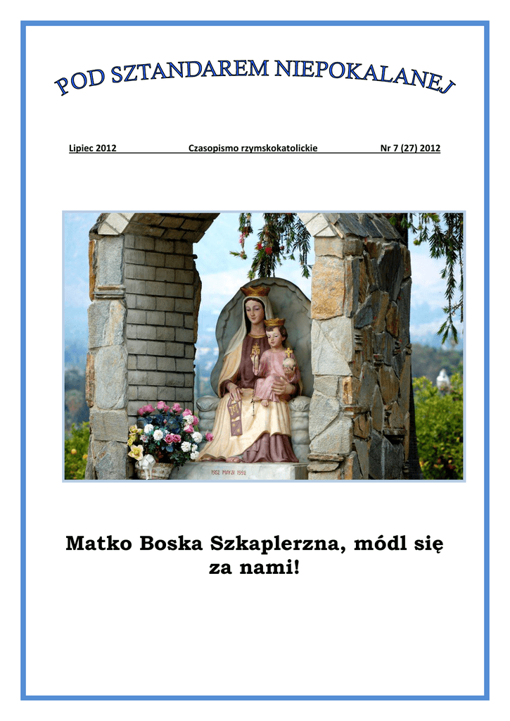 Lipiec 2012 Czasopismo rzymskokatolickie Nr 7 (27) 2012 Matko Boska Szkaplerzna, módl się za nami! 1 "Nihil nos Deus habere voluit quod per Mariae manus non transiret". "Totis ergo medullis cordium, totis praecordiorum affectibus, votis omnibus Mariam hanc veneremur, quia sic est voluntas eius, qui totum nos habere voluit per Mariam". (S. Bernardus Claraevallensis) "Z woli Boga nic nie posiadamy, co by nie przeszło przez ręce Maryi". "Zatem czcijmy Maryję wszystkimi poruszeniami serca, wszystkimi wewnętrznymi uczuciami i pragnieniami, ponieważ taka jest wola Boga, iżbyśmy wszystko mieli przez Maryję". (Św. Bernard z Clairvaux) Spis treści Utarczka duchowa. – O modlitwie myślnej .......................................................................................... 3 Ks. Wawrzyniec Scupoli Królowo ozdobo Karmelu, módl się za nami ....................................................................................... 4 "Róża Duchowna" Prawdziwe i fałszywe Chrześcijaństwo ................................................................................................ 6 Ernest Hello WITAJ KRÓLOWO! Sposoby osiągnięcia doskonałości. – Kilka zasad św. Jana Berchmansa ............................................ 7 Witaj, o Matko, w złocistym diademie, Duch św. Franciszka Salezego. O skromności oczuniźli ............................................................................ 8 Stokroć jaśniejsza, ranna zorza! Bp Jan Piotr Camus Zdroje łask Bożych spuszczaj nam Wzruszające pośrednictwo Maryi. Historia młodej chrześcijanki – w Misjach Karmelu .................... 9 "Głos Karmelu" Ćwiczenia duchowne. Rozmyślanie o piekle ..................................................................................... 11 O. Tomasz Młodzianowski SI Cudowne nawrócenie i chrzest p. Ratisbonne z żydostwa do wiary chrześcijańskiej ....................... 14 Guido Görres Nieznajomość zasad wiary katolickiej przyczyną zguby wielu ......................................................... 28 Teolog katolicki Wykład nauki chrześcijańskiej. – Wykład Siódmego Przykazania .................................................... 30 Św. Robert kard. Bellarmin 2 UTARCZKA DUCHOWA CZYLI NAUKA POZNANIA, POKONANIA SAMEGO SIEBIE, I DOJŚCIA DO PRAWDZIWEJ DOSKONAŁOŚCI CHRZEŚCIJAŃSKIEJ KS. WAWRZYNIEC SCUPOLI O modlitwie myślnej Modlitwa myślna, jest wzniesienie ducha ku Bogu i błaganie w duchu wyraźne, lub domyślne o rzeczy, które sądzimy nam być potrzebne. Błagamy wyraźnie Boga, kiedy w sercu się odzywamy: O Boże! udziel mi tej łaski dla uwielbienia Twego świętego Imienia. Albo: Panie wierzę mocno, że chcesz i to jest z chwałą Twoją, że błagam o takowe duszy dobrodziejstwo: spełnij zatem teraz Panie we mnie Twoją świętą wolę. Kiedy nieprzyjaciele naciskają na nas i uderzają z całą mocą, możemy w te do Pana przemówić słowa: Boże, ucieczko moja, wszystka mocy moja, pospiesz na ratunek mój, abym nie upadł. Jeśli natarczywość pokusy nie przestanie na nas uderzać, nie przestawajmy w podobny modlić się sposób do Pana, dając zawsze mężny złośliwemu napastnikowi odpór. Kiedy najważniejsza część utarczki już minie, zwrócisz się wtenczas synu ku Panu naszemu i błagając aby wspomniał z jednej strony na siłę wroga, a z drugiej na twą słabość, możesz mówić: Oto Panie ja stworzenie Twoje, dzieło rąk Twoich, ja ceną krwi Twojej najdroższej okupiony: Patrz jak szatan wysila się, aby mnie pochwycił w swe sidła i zgubił. Do Ciebie przeto Panie się uciekam, w Tobie całą mą nadzieję pokładam, boś Ty jest nieskończenie dobry, nieskończenie potężny. Miej Panie litość nade mną, niewidomym, choć ta ślepota z mej własnej pochodzi winy, bo bez pomocy Twej nie zdołam uniknąć popadnięcia w rękę Twoich nieprzyjaciół. Trzymaj mnie Panie, jedyna nadziejo, jedyna mocy mej duszy. Błagamy Boga domyślnie o łaski, kiedy Mu przedstawiamy tylko nasze potrzeby, nie mówiąc nic więcej. Stawiwszy się przeto w obecności Boga uznajemy, że sami z siebie nie jesteśmy uczynić zdolni nic dobrego, ani uniknąć złego, pałając nadto gorącym pragnieniem Jemu służenia, zwracamy całą naszą uwagę ku Bogu i oczekujemy w pokorze, w ufności Jego pomocy i wsparcia. To wyznanie naszej nędzy, to pragnienie służenia Bogu, to wreszcie uczucie wiary i ufności, stanowią modłę i błaganie domyślne, które nam wyjedna od Boga to, co duszy jest potrzebnym. I ono tym jest skuteczniejsze, im naszej nędzy wyznanie jest szczersze, im pragnienie służenia Bogu w nas jest gorętsze, im wiara żywsza. Jest jeszcze inny rodzaj modlitwy nieco krótszej, która się odbywa przez pogląd tylko na duszę i przedstawienie Panu swej nieudolności i taki pogląd jest przypomnieniem łaski, o jaką już błagaliśmy Pana, o jaką jeszcze błagamy, chociaż ani tego błagania, ani naszego pragnienia nie wyrażamy słowy. Staraj się synu nawyknąć do tego rodzaju modły i naucz się jej używać przy każdej sposobności, a doświadczenie cię przekona, że nie ma nad to nic łatwiejszego, a przecież jednocześnie nic nad to wyborniejszego i pożyteczniejszego. Utarczka duchowa czyli nauka poznania, pokonania samego siebie, i dojścia do prawdziwej doskonałości chrześcijańskiej. Przez Księdza Scupoli, Teatyna. Przełożył z francuskiego X. S. U. W. C., Warszawa 1858, ss. 140-142. 3 Za Przyczyną Maryi Przykłady opieki Królowej Różańca św. Królowo, ozdobo Karmelu, módl się za nami! Pod tym wezwaniem Zakon Karmelitański od dawna czci Tę, którą u nas wzywamy jako Orędowniczkę szkaplerza św. Życzeniem usilnym jest wielu pobożnych dusz, aby w litanii Loretańskiej Stolica Święta dodała i to wezwanie; kongres Mariański w Lyonie zaniósł już prośbę o to do Ojca Świętego. I słusznie, bo N. P. Maryja przez szkaplerz św. od tylu wieków ustawicznie daje dowody, jak miłą jest Jej t