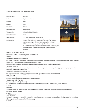 SW-52 - Anglia: Śladami św. Augustyna 11dni autokarem
