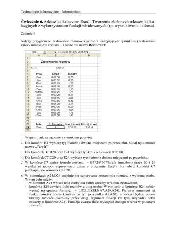 Ćwiczenie 6. Arkusz kalkulacyjny Excel. Tworzenie zło onych