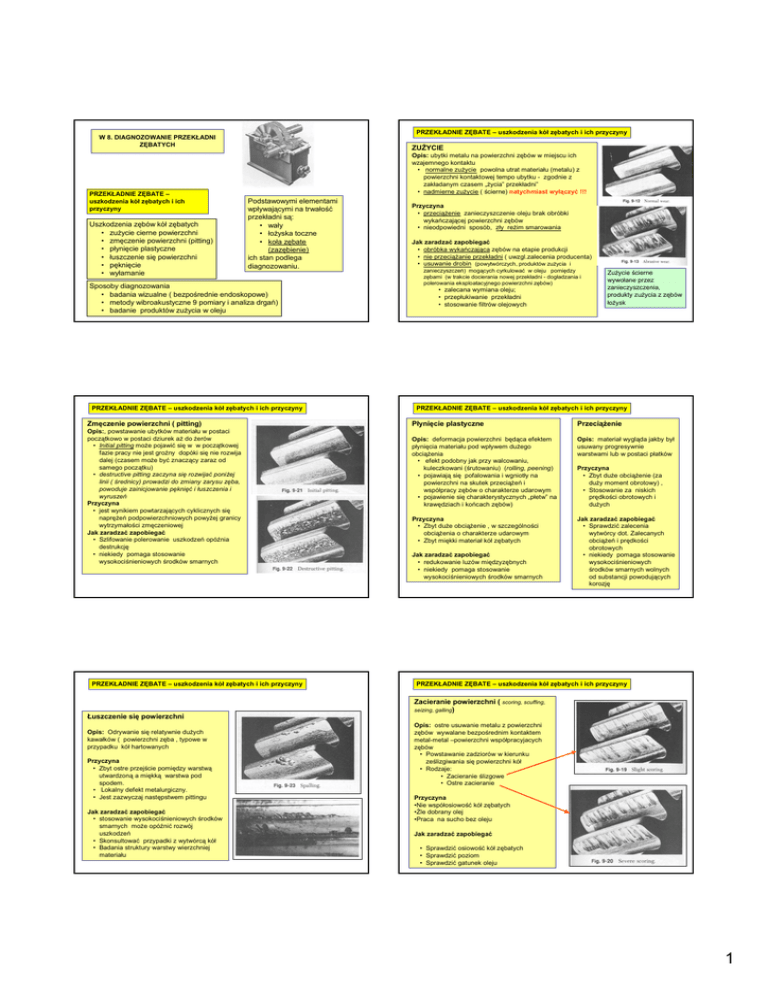 Uszkodzenia zębów kół zębatych • zuŜycie cierne powierzchni