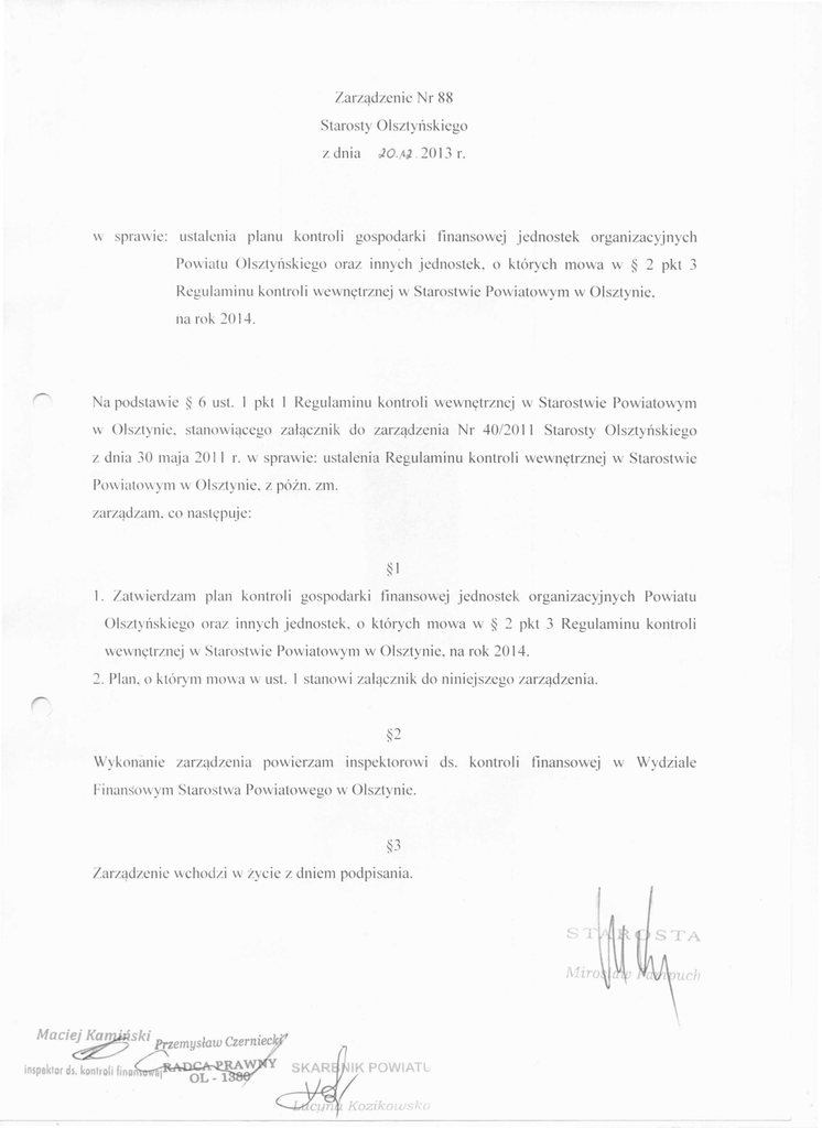 Zarzqdzenie Nr 88 Starosty Olsztyllskicgo z dnia \\ spra\Vlc