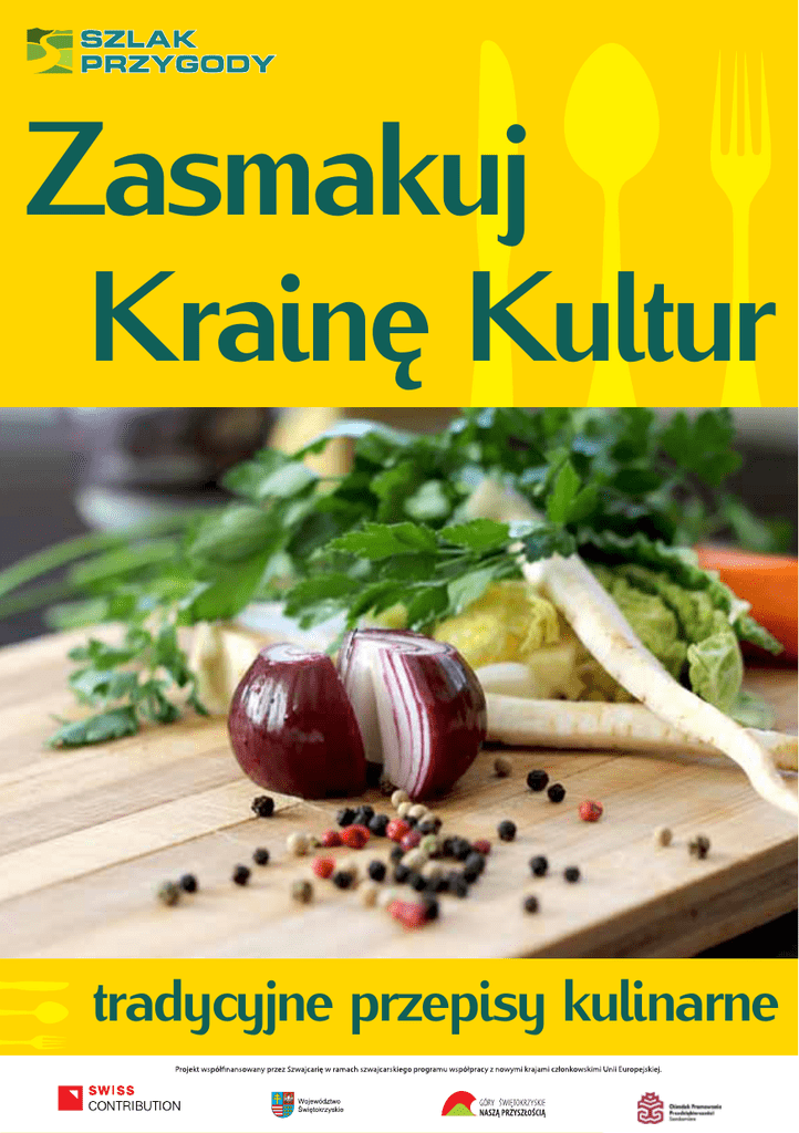 Zasmakuj Krainę Kultur tradycyjne przepisy kulinarne 1 SZLAK PRZYGODY – dobrze trafiłeś! Marzysz o podróży w czasie do średniowiecza, albo dalej – do czasów neolitycznych czy okresu, w którym żyły dinozaury? A może chciałbyś, by do swojej posiadłości zaprosił Cię Henryk Sienkiewicz czy Stefan Żeromski? Chcesz smakować lokalne wina poznając miejsca gdzie krzyżowały sie dawne szlaki handlowe? Fascynuje Cię kultura żydowska, ariańska, tatarska a nawet indiańska? Chcesz znaleźć się w miejscach, których odwiedzenie jest doświadczeniem nieomal mistycznym? Dobrze trafiłeś! Szlak Przygody – to największy sieciowy produkt turystyczny w Pol sce. Obejmuje prawie 1000 km wyznaczonych tras, ponad 100 atrakcji turystycznych pogrupowanych w siedem krain tematycznych i około 80 Partnerów, u których można zdobywać punkty w programie lojalnościowym! Podróż po Szlaku Przygody dostarczy Ci niezapomnianych przeżyć i emocji. Może zostaniesz bohaterem świętokrzyskiej legendy! A gdy będziesz chciał odpocząć od nadmiaru wrażeń, czeka na Ciebie dziewicze piękno dzikiej przyrody. Przy odrobinie szczęścia będziesz mógł usłyszeć klekot bociana czarnego, krzyk żurawi, czy zostać świadkiem walki cietrzewi. Ale to nie wszystko! Za aktywne podróżowanie i odkrywanie atrakcji otrzymasz punkty, które potem wymienisz na nagrody. Skorzystaj z naszej oferty, a na pewno nie pożałujesz! Zbieraj punkty wymieniaj na nagrody www.szlakprzygody.eu 2 „ZASMAKUJ KRAINĘ KULTUR” Projekt współfinansowany ze środków Szwajcarsko-Polskiego Programu Współpracy realizowanego przez Ośródek Promowania i Wspierania Przedsiębiorczości Rolnej na podstawie Umowy Nr URP/SPPW/1.1/KIK/08 „Góry Świętokrzyskie nasza przyszłością”. Projekt „Zasmakuj Krainę Kultur” zakładał rozwój lokalny przy wykorzystaniu dziedzictwa kulturowego głównie kulinarnego. Bazę projektu stanowiła „Kraina Kultur: - element turystycznego Szlaku Przygody, siedmiu pętli tematycznych liczących blisko 1000 km pozytywnie opiniowanego przez Regionalną Organizację Turystyczną Województwa Świętokrzyskiego oraz nagrodzone przez Polską Organizacje Turystyczną tytułem Najlepszy Produkt Turystyczny roku 2013. W ramach niniejszego projektu zaplanowano wzbogacenie oferty szlaku i jednocześnie Województwa Świętokrzyskiego o walory naturalne, kulturowe, przyrodnicze itp. Założeniem projektu było zorganizowanie tematycznych konkursów kulinarnych– skupionych wokół tradycyjnych bądź zarejestrowanych produktów lokalnych. Zaplanowano także utworzenie dodatkowych atrakcji w postaci trzech Questów wykorzystujących lokalne zasoby. Tworzenie Questów to proces silnie aktywizujący społeczność lokalną, branżę turystyczną, regionalnych twórców, animatorów lokalnych. Mamy nadzieję, że realizacja projektu i wypracowane w jego ramach questy oraz książka kucharska, którą właśnie trzymacie Państwo w rękach przyczynią się do: • promocji atrakcji turystycznych znajdujących się na obszarze Krainy Kultur; • zachęcenia turysty odwiedzającego region objęty przez projekt do wydłużenia pobytu o charakterze rekreacyjno - turystycznym oraz skorzystania z oferty programu lojalnościowego; • promocji lokalnych produktów i podmiotów (gospodarstw, restauracji, stowarzyszeń), które je wytwarzają. 3 „ZASMAKUJ KRAINĘ KULTUR” „Kultura kulinarna jest ważną częścią kultury ogólnej. Tak jak język, tradycje, wierzenia, historia, obyczaje. W XXI wieku, kultura kulinarna nadal jest jednym z najważniejszych wskaźników odróżniających rasy i narody. Jest też dziś jednym z najsilniejszych czynników dla rozwoju turystyki, którą określam turystyką kulinarną – w poszukiwaniu smaków, produktów, tradycji i obyczajów związanych ze spożywaniem pokarmów.” Wojciech Charewicz dziennikarz, podróżnik, kucharz, krytyk kulinarny, wędkarz i szachista. Wybitny specjalista w zakresie potraw z dziczyzny i ryb W ramach realizowanego projektu Lokalna Grupa Działania „Białe Ługi” zorganizowała i przeprowadziła cykl trzech konkursów kulinarnych, mających na celu promocje niejednokrotnie zapomnianych przepisów. Zasady konkursu zakładały przede wszystkim wykorzystywanie w potrawach produktów tradycyjnych regionu Gór Świętokrzyskich. Potrawy do konkursów zgłaszać mogli zarówno przedstawiciele branży turystycznej i gastronomicznej, jak również agroturyści, osoby indywidualne oraz lokalne stowarzyszenia, którym kultywowanie tradycyjnej kuchni świętokrzyskiej jest bliskie sercu. 4 W sumie we wszystkich 3 konkursach zgłoszono przeszło 60 indywidualnych potraw, każda wyjątkową w swym aromacie i smaku. Publikacja, która właśnie trzymacie Państwo w rękach jest zbiorem nagrodzonych we wszystkich trzech konkursach potraw. Mamy nadzieję, że przynajmniej część z nich po wypróbowaniu na stałe zagości na Państwa stołach. Życzymy przyjemnej lektury. Realizator projektu Lokalna Grupa Działania „Białe Ługi” 26-021 Daleszyce, Trzemosna 27 e-mail: [email protected] tel./fax 41 307 26 44 Konkurs Kulinarny „Ziemniak nie tylko pieczony” I miejsce – „Pazicka” II miejsce – Bulwa ziemniaczana III miejsce – Dębackie serca czekoladowe z ziemniakiem Wyróżnienia: Ziemniaczane knedle ze śliwką szydłowską Faszerowane ziemniaki Ziemniaczanka z grzybami Pączki ziemniaczane Schaboszczak ziemniaczany spod zamczyska Konkurs Kulinarny „Smaki pieczystego” I miejsce – Rolada faszerowana żurawiną II miejsce – Dziczyzna w sosie własnym II miejsce – Karczek w skorupie Wyróżnienia: Forszmak świętokrzyski Królik w winie Karkówka w warzywach Warkocz Lejdisek Rakowskie grudy 5 Konkurs kulinarny „Smaki gęsiny” Nagroda specjalna Marszałka Województwa świętokrzyskiego – Pierogi z mięsa gęsiego Nagroda specjalna Europosła Czesława Siekierskiego – Gęś pieczona z solanki I miejs