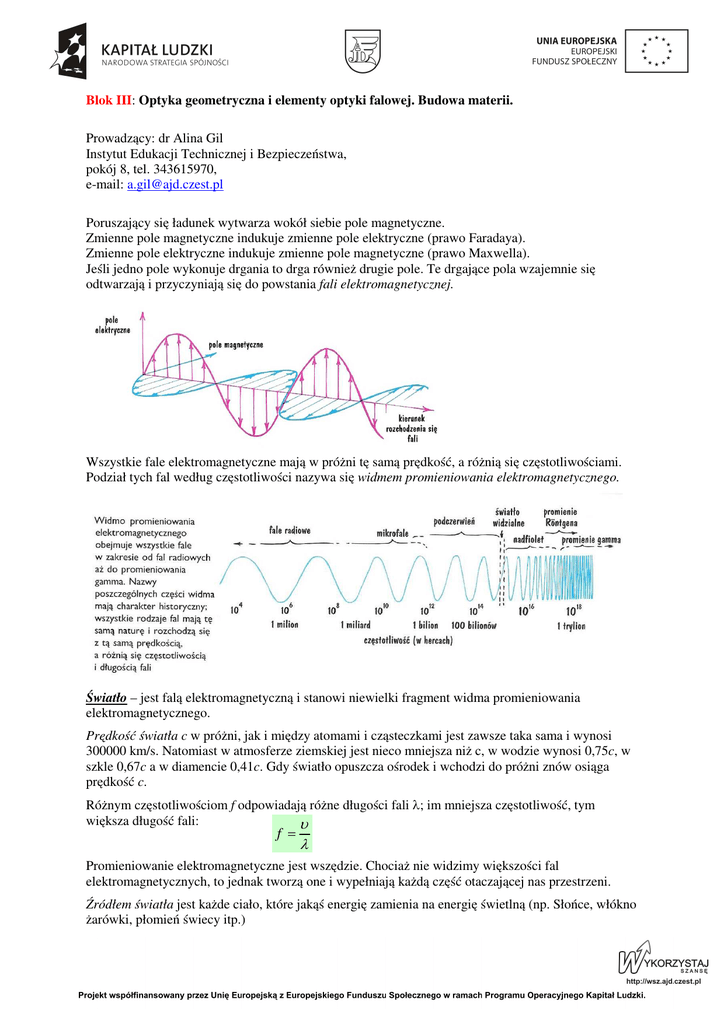 Optyka geometryczna i elementy optyki falowej. Budowa materii