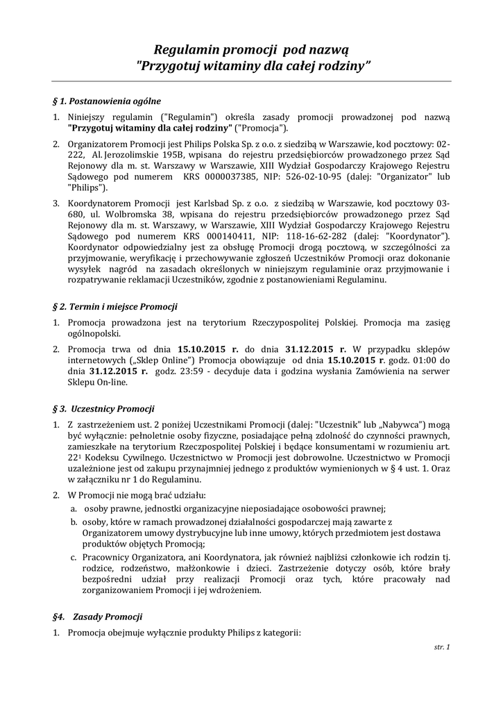 2. Organizatorem Promocji jest Philips Polska Sp. z o.o. z siedzibą w Warszawie, kod pocztowy: 02222, Al. Jerozolimskie 195B, wpisana do rejestru przedsiębiorców prowadzonego przez Sąd