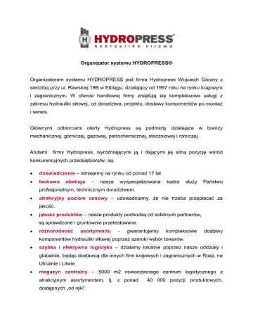 Organizator systemu HYDROPRESS® Organizatorem systemu