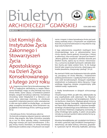 Nr 05 (415) • 03 lutego 2017 List Komisji ds. Instytutów Życia Zakonnego i Stowarzyszeń Życia Apostolskiego na Dzień Życia Konsekrowanego 2 lutego 2017 roku W nocie z innymi. A skoro konsekracja chrztu jest podstawą osobistej więzi z Chrystusem we wspólnocie Kościoła, to życie konsekrowane w niej właśnie znajduje swój fundament. Centrum Informacyjne Archidiecezji Gdańskiej www.gdansk.gosc.pl ISSN 2083-4403 Z tego zakorzenienia wszystkich możliwych form chrześcijańskiego życia w sakramentalnej łasce chrztu wynika równa godność chrześcijan, o której w adhortacji „Vita consecrata” tak pisał Jan Paweł II: „Równa godność wszystkich członków Kościoła jest dziełem Ducha, opiera się na chrzcie i bierzmowaniu, a umacnia się dzięki Eucharystii. Jednakże dziełem Ducha jest także wielość form. To On buduje Kościół jako organiczną komunię, obejmującą wielorakie powołania, charyzmaty i posługi” (nr 31). Na ziemiach Polski owo budowanie Kościoła splotło się, począwszy od chrztu Mieszka, z budowaniem polskiej państwowości. Cząstką tej historii jest obecność osób konsekrowanych, biorących współodpowiedzialność za budowanie dobra Ojczyzny. Z tego wielkiego bogactwa dziejów przypomnijmy tylko niektóre osoby i wydarzenia. 2. Osoby konsekrowane w dziejach ochrzczonego narodu Chrystianizacja Polski, po 966 roku, dokonywała się przy współudziale osób zakonnych. Św. Wojciech, zanim został biskupem, był benedyktynem. Podobnie bp Bruno z Kwerfurtu. Obydwaj zginęli śmiercią męczeńską, głosząc Ewangelię. Męczennikami było też Pięciu Braci Międzyrzeckich z opactwa benedyktyńskiego ufundowanego przez Bolesława Chrobrego. W kronice Thietmara znajdujemy wzmiankę, że córka Chrobrego była opatką. A zatem od początku istniały na ziemiach polskich także żeńskie formy życia konsekrowanego. 1. Konsekracja chrztu i konsekracja zakonna Do Kościoła zostajemy włączeni poprzez sakrament chrztu. Bóg pragnie, aby łaska chrzcielna rozwijała się w nas na różne sposoby. Jedną z konkretnych dróg tego rozwoju jest życie konsekrowane. Z drugiej strony można stwierdzić, że istotą konsekracji zakonnej jest osobista więź z Chrystusem we wspól- Klasztory benedyktynów, jak i przybyłych do Polski w XII wieku cystersów, były ośrodkami ewangelizacji i katechizacji, ale także kultury, rolnictwa, gospodarki. Cystersem był bł. Wincenty Kadłubek, pierwszy 1 Biuletyn Archidiecezji Gdańskiej 03 lutego 2017 tegoroczny Dzień Życia Konsekrowanego, który tradycyjnie obchodzimy w święto Ofiarowania Pańskiego, mając za sobą obchody 1050-lecia Chrztu Polski, warto ukazać, w kontekście polskich dziejów, związek konsekracji zakonnej i konsekracji chrzcielnej. Sobór Watykański II w Dekrecie o odnowie życia zakonnego stwierdza, że członkowie wszystkich instytutów powinni sobie uświadamiać, iż całe swe życie oddali na służbę Bogu, „co stanowi jakąś szczególną konsekrację, która korzeniami sięga głęboko w konsekrację chrztu i pełniej ją wyraża” (nr 5). Biuletyn Archidiecezji Gdańskiej 03 lutego 2017 Centrum Informacyjne Archidiecezji Gdańskiej www.gdansk.gosc.pl nr 05 (415) jako gorliwy spowiednik. W czasach zaborów powstają niepokalanki, które wychowały pokolenia polskich dziewcząt w duchu patriotyzmu. dziejopisarz Polski. XIII i XIV wiek, to na ziemiach polskich czas dynamicznego rozwój augustianów, franciszkanów oraz dominikanów, na czele z tak wybitnymi postaciami jak św. Jacek i bł. Czesław. W tym okresie powstają w Polsce klasztory klarysek z takimi osobowościami jak święte księżne: Kinga i Jolanta. Pod koniec XIV wieku zostają sprowadzeni do Polski paulini, których klasztor na Jasnej Górze stał się duchową stolicą Polski i punktem odniesienia w najtrudniejszych momentach polskiej historii. Później, w wiekach XVI-XVIII, jezuici, a także pijarzy ze Stanisławem Konarskim na czele, tworzą w Polsce nowoczesne szkolnictwo. Kształcą kolejne pokolenia w miłości do Polski i Kościoła. Jakub Wujek tłumaczy Biblię, przez co m.in. przyczynia się do rozwoju nowożytnej polskiej mowy. Piotr Skarga natomiast uczy Polaków, poczynając od sprawujących władzę, patriotyzmu i dobrych obyczajów. Jego „Żywoty świętych” stają się najpoczytniejszą polską lekturą. W tym okresie urodzona w Braniewie Regina Protmann zakłada zgromadzenie katarzynek, które podejmuje dzieła miłosierdzia. Charyzmatyczna benedyktynka Magdalena Mortęska, pisarka i tłumaczka, kładzie nacisk na wykształcenie, wymagając od mniszek pisania po polsku i po łacinie. Jest autorką dwóch wybitnych dzieł, które wchodzą do kanonu barokowej literatury religijno-mistycznej. Założycielka prezentek Zofia Czeska tworzy model życia konsekrowanego kobiet zaangażowanych aktywnie w życie społeczne, szczególnie na polu edukacji. W 1612 roku przybywają do polski karmelitanki, których klasztory stają się promieniującymi ośrodkami modlitwy. Jedna z pierwszych polskich karmelitanek, mistyczka Marianna Marchocka, jest autorką pierwszej autobiografii napisanej przez Polkę. Po odzyskaniu przez Polskę niepodległości zakony włączyły się w dzieło odbudowywania polskiej państwowości. Potem osoby konsekrowane wraz z całym narodem opierały się hitlerowskiej i stalinowskiej napaści, płacąc za to często najwyższą cenę, czego symbolem jest Maksymilian Kolbe, a także 11 nazaretanek zamordowanych przez okupanta niemieckiego w Nowogródku, czy też niepokalanki, które zginęły z rąk UPA. W czasach komunizmu zakony, dzięki mądrości Prymasa Wyszyńskiego, nie tylko przetrwały, ale stanowiły przestrzenie wolności i nadziei. 3. Osoby konsekrowane ambasadorami Polski Różnorakie formy życia konsekrowanego charakteryzują się m.in. tym, że są międzynarodowe. Osoby konsekrowane z zagranicy żyją i pracują w Polsce, a z drugiej strony zakonnice 
