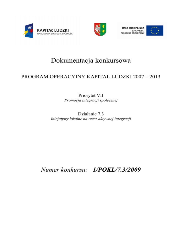 Dokumentacja konkursowa PROGRAM OPERACYJNY KAPITAŁ LUDZKI 2007 – 2013 Priorytet VII Promocja integracji społecznej Działanie 7.3 Inicjatywy lokalne na rzecz aktywnej integracji Numer konkursu: 1/POKL/7.3/2009 Ogłoszenie konkursowe Zarząd Województwa Lubuskiego odwiesza konkurs otwarty nr 1/POKL/7.3/2009 na składanie wniosków o dofinansowanie ze środków Europejskiego Funduszu Społecznego w ramach Priorytetu VII Promocja integracji społecznej, Działania 7.3. Inicjatywy lokalne na rzecz aktywnej integracji Programu Operacyjnego Kapitał Ludzki, projektów obejmujących: 1. projekty przyczyniające się do integracji społecznej mieszkańców obszarów wiejskich (z wyłączeniem instrumentów objętych zasadami pomocy publicznej) 2. wsparcie inicjatyw lokalnych o charakterze informacyjnym, szkoleniowym i promocyjnym (np. w formie szkoleń, spotkań, seminariów) mających na celu przeciwdziałanie wykluczeniu społecznemu mieszkańców obszarów wiejskich 3. rozwój dialogu, partnerstwa publiczno‐społecznego i współpracy na rzecz rozwoju zasobów ludzkich na poziomie lokalnym Kwota dofinansowania w ramach konkursu wynosi 3.110.361,00 zł Wnioski o dofinansowanie projektu można składać osobiście, kurierem lub pocztą od 10 sierpnia 2009 roku w dni robocze od godz. 8.00 do 15.00 (nabór prowadzony będzie w sposób ciągły, do wyczerpania określonego limitu środków lub do zawieszenia / zamknięcia konkursu) w Urzędzie Marszałkowskim Województwa Lubuskiego /Departament Europejskiego Funduszu Społecznego ul. Podgórna 7, 65–057 Zielona Góra, kancelaria ogólna pok. nr 51 (parter) lub w Biurze Samorządu Województwa Lubuskiego z siedzibą w Gorzowie Wlkp. ul. Jagiellończyka 8, 66–400 Gorzów Wielkopolski, sekretariat – III piętro, pok. nr 302 i 304. O dofinansowanie mogą występować wszystkie podmioty, które spełnią kryteria określone w dokumentacji konkursowej, z wyłączeniem podmiotów określonych w art. 211 ustawy z dnia 30 czerwca 2005 roku o finansach publicznych (Dz. U. Nr 249, poz. 2104 z późn. zm.). Dokumentacja konkursowa jest dostępna w: ¾ Punkcie Informacyjnym EFS Urzędu Marszałkowskiego Województwa Lubuskiego ul. Podgórna 7, 65–057 Zielona Góra, I piętro, ¾ Biurze Samorządu Województwa Lubuskiego z siedzibą w Gorzowie Wlkp. ul. Jagiellończyka 8, 66–400 Gorzów Wielkopolski, III piętro, pok. nr 332 oraz na stronach internetowych www.lubuskie.pl, www.efs.lubuskie.pl. Dodatkowe informacje można uzyskać w Punkcie Informacyjnym EFS, tel. (068) 45 655 21, (068) 45 65 251 [email protected]. oraz w punkcie informacyjnym Biura Samorządu Województwa Lubuskiego z siedzibą w Gorzowie Wlkp., tel. (095) 711 53 18, [email protected] 2 SPIS TREŚCI I. Przedmiot konkursu ……………………………………………………………………………………4 II. Informacje ogólne ……………………………………………………………………………………...4 2.1. Informacje o konkursie . . . . . . . . . . . . . . . . . . . . . . . . . . . . . . . . . . . . . . . . . . . . . . . . . . . . . . . . . . . . 4 2.2. Kwota środków przeznaczona na dofinansowanie projektów . . . . . . . . . . . . . . . . . . . . . . . . . . . . . . 5 2.3. Forma finansowania . . . . . . . . . . . . . . . . . . . . . . . . . . . . . . . . . . . . . . . . . . . . . . . . . . . . . . . . . . . . . . 5 2.4. Procedura wyboru projektów do realizacji . . . . . . . . . . . . . . . . . . . . . . . . . . . . . . . . . . . . . . . . . . . . 6 2.5. Podstawa prawna i dokumenty programowe . . . . . . . . . . . . . . . . . . . . . . . . . . . . . . . . . . . . . . . . . . . 8 2.6. Procedura wycofania wniosku . . . . . . . . . . . . . . . . . . . . . . . . . . . . . . . . . . . . . . . . . . . . . . . . . . . . . . 8 III. Wymagania konkursowe . . . . . . . . . . . . . . . . . . . . . . . . . . . . . . . . . . . . . . . . . . . . . . . . . . . . . . . . . . . 9 3.1. Podmioty uprawnione do ubiegania się o dofinansowanie projektu . . . . . . . . . . . . . . . . . . . . . . . . . 9 3.2. Wymagania dotyczące grupy docelowej . . . . . . . . . . . . . . . . . . . . . . . . . . . . . . . . . . . . . . . . . . . . . . 9 3.3. Wymagania czasowe . . . . . . . . . . . . . . . . . . . . . . . . . . . . . . . . . . . . . . . . . . . . . . . . . . . . . . . . . . . . . 9 3.4. Wymagania finansowe . . . . . . . . . . . . . . . . . . . . . . . . . . . . . . . . . . . . . . . . . . . . . . . . . . . . . . . . . . . . 9 3.5. Rezultaty i produkty oraz wartość dodana projektu . . . . . . . . . . . . . . . . . . . . . . . . . . . . . . . . . . . . . . 10 3.6. Wymagania dotyczące partnerstwa i podwykonawstwa . . . . . . . . . . . . . . . . . . . . . . . . . . . . . . . . . . 11 3.7. Wymagania dotyczące innowacyjności i współpracy ponadnarodowej . . . . . . . . . . . . . . . . . . . . . . 12 3.8. Wymagania dotyczące przygotowania wniosku o dofinansowanie . . . . . . . . . . . . . . . . . . . . . . . . . . 12 3.9. Wymagania związane z realizacją projektu . . . . . . . . . . . . . . . . . . . . . . . . . . . . . . . . . . . . . . . . . . . . 16 3.10. Wymagane załączniki do wniosku/umowy . . . . . . . . . . . . . . . . . . . . . . . . . . . . . . . . . . . . . . . . . . . 16 IV. Kryteria wyboru projektów . . . . . . . . . . . . . . . . . . . . . . . . . . . . . . . . . . . . . . . . . . . . . . . . . . . . . . . 18 4.1. Ogólne kryteria formalne . . . . . . . . . . . . . . . . . . . . . . . . . . . . . . . . . . . . . . . . . . . . . . . . . . . . . . . . . . 18 4.2. Szczegółowe kryteria dostępu . . . . . . . . . . . . . . . . . . . . . . . . . . . . . . . . . . . . . . . . . . . . . . . . . . . . . . 19 4.3. Ogólne kryteria horyzontalne . . . . . . . . . . . . . . . . . . . . . . . . . . . . . . . . . . . . . . . . . . . . . . . . . . . . . . . 20 4.4. Ogólne kryteria merytoryczne . . . . . . . . . . . . . . . . . . . . . . . . . . . . . . . . 