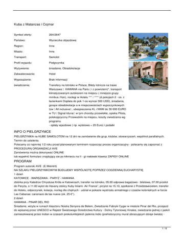 do Paryża, o 11.00 wylot do Havany stolicy Kuby liniami -Air France”, przylot na 15.10, spotkanie z Przedstawicielem, transfer
