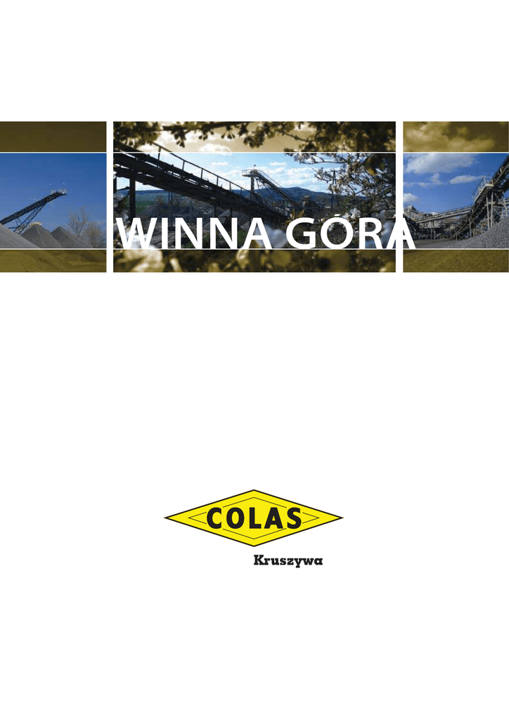 WINNA GÓRA Kopalnia Bazaltu „Winna Góra” położona jest obok miejscowości Piotrowice, gmina Męcinka, w województwie dolnośląskim. Kopalnia „Winna Góra” to zakład górniczy zajmujący się wydobyciem i przeróbką mechaniczną doskonałej jakości bazaltu. Bazalt ze złoża „Winna Góra” jest skałą magmową, ciemnej barwy, o teksturze zbitej. Charakteryzuje się dużą wytrzymałością na ściskanie i wysoką mrozoodpornością, niską ścieralnością oraz dobrym powinowactwem z asfaltem, co kwalifikuje go do zastosowania w budownictwie drogowym i wytwarzania mas do nawierzchni bitumicznych jak również do betonów specjalnych. Ekspedycja kruszywa może odbywać się transportem kołowym i kolejowym. W ofercie kopalni znajdują się wysokiej jakości kruszywa bazaltowe: - Kruszywo drobnogranulowane 0/2; - Mieszanka drobnogranulowana 0/4; - Grys 2/8; - Grys 8/11; - Grys 8/16; - Grys 16/22. Kopalnia Bazaltu „Winna Góra” spełnia europejskie normy jakości dowodem czego jest wprowadzony w 2005 r. System Zakładowej Kontroli Produkcji - Certyfikat 1454CPD-035. Kompetencja, solidność i dbałość o zadowolenie klienta to nasze cechy, które są gwarancją jakości i terminowości realizacji zamówień. Wysokie standardy funkcjonowania Kopalni „Winna Góra” zapewnia ciągle udoskonalana technologia wydobycia i przeróbki mechanicznej bazaltu oraz dobrze wyszkolona załoga, przygotowana do spełniania procesów rynkowych i potrzeb klientów. COLAS Kruszywa Sp. z o.o. Kopalnia Bazaltu „Winna Góra” w Piotrowicach 59-424 Męcinka Tel./Fax. 076 870 88 21 lub 076 870 80 22 [email protected] www.colas.pl