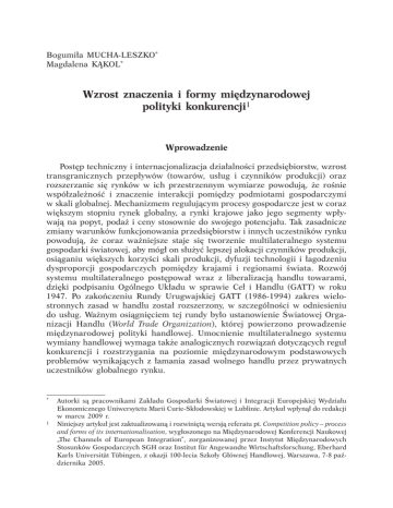 Wzrost znaczenia i formy międzynarodowej polityki konkurencji1