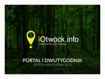 PORTAL I DWUTYGODNIK OFERTA HANDLOWA 2015 SPIS TREŚCI 1. Wstęp 2. Cennik web 3. Cennik prasa 3. Opracowanie graficzne reklam 4. Kontakt 2 3 4 9 15 16 OFERTA HANDLOWA 2015 WSTĘP iOtwock jest platformą trójmedialną dostępną jednocześnie jako bezpłatna gazeta dwutygodnik, portal internetowy oraz aplikacja na smartfona. Zasięg gazety to wszystkie gminy Powiatu: Otwock, Józefów, Karczew, Celestynów, Kołbiel, Osieck, Sobieni-Jeziory, Wiązowna. Powiat zamieszkuje ponad 121 tysięcy mieszkańców. Nakład dwutygodnika to 12 000 egzemplarzy, to największy nakład gazety w Powiecie. Gazeta jest bezpłatna, cały nakład trafia do czytelników, nie ma zwrotów. Jedną gazetę średnio czytają 3 osoby. Gazeta ma charakter informacyjno-reklamowy. Cele i założenia dla kampanii Jako główne cele stawiane przez iOtwock uznaliśmy: • zapewnienie trwałej informacji o Państwa produktach wśród społeczności powiatu otwockiego; • zapewnienie różnorodności w prowadzonej kampanii, tak, by uniknąć elementu opatrzenia i przyzwyczajenia. Metody komunikacji reklamowej Uwzględniając powyższe proponujemy: • stałą kampanię informacyjną na portalu, wykorzystując banery odsłonowe; stałą kampanię w gazecie z użyciem modułów graficznych 3 OFERTA HANDLOWA 2015 CENNIK WEB W ofercie na stronę internetową znajdują się banery o różnych wymiarach, które dzięki swojej lokalizacji zapewniają wysoką ilość wyświetleń, oraz czytelność. Ponadto jak obrazuje poniższy diagram reklama na regionalnych stronach internetowych jest skierowana do wąskiego targetu. Dokładna specyfikacja każdego baneru, znajduje się na kolejnych slajdach. Gdzie w internecie badani najczęściej poszukują informacji o regionie? Źródło: http://www.internetstandard.pl/news/355274/Internet.zrodlem.informacji.o.regionie.html 4 OFERTA HANDLOWA 2015 CENNIK WEB 750x200 Super baner / Bilboard • Baner poziomy o wymiarach 750x100; 750x200; 750x300 px; • 10 000 wyświetleń miesięcznie; • Cena: 1300 zł; 5 miejsce na baner OFERTA HANDLOWA 2015 CENNIK WEB Scyscraper / Sky • Baner pionowy o wymiarach 160x600 px; • 10 000 wyświetleń miesięcznie; • Cena 1100 zł; 160x600 miejsce na baner 6 OFERTA HANDLOWA 2015 CENNIK WEB Rectangle 300x250 • Baner prostokątny o wymiarach 300x250 px; • 10 000 wyświetleń miesięcznie; • Cena 1200 zł; miejsce na baner 7 OFERTA HANDLOWA 2015 CENNIK WEB miejsce na artykuł Artykuł sponsorowany WEB Tekst, z dowolną ilością zdjęć, umieszczony pod głównym felietonem, w kontenerze TVN24. • 1 dzień emisji w cenie 30 zł; 8 OFERTA HANDLOWA 2015 CENNIK PRASA W tej sekcji znajdą państwo informacje odnośnie sposobu, oraz formy zapełniania przestrzeni reklamowej gazety iOtwock.info, wraz z cenami. Wyjściową jednostką obliczeniową przedstawioną w ofercie jest 1 moduł - ok. 40x35 mm. Gazeta • Cena 1 modułu to 99 zł; • Cena wykupienia 1/2 strony to 799 zł; • Cena wykupienia całej strony to 1699 zł; Ceny dotyczą miejsc w kategorii Ogłoszenia/Reklama Artykuł sponsorowany • Jest to forma reklamy w prasie lub internecie. Artykuł sponsorowany może być przygotowany przez naszą redakcję*. Wygląda jak normalny tekst redakcyjny, ale promuje w określony, mniej lub bardziej subtelny sposób, dany produkt lub biznes. Cena zależy od wielkości tekstu/wykorzystania modułów. 9 * Dodatkowa opłata 100 zł lub przez reklamowaną firmę. OFERTA HANDLOWA 2015 CENNIK PRASA Dopłaty: - Pierwsza strona + 200% - Trzecia strona +100% - Rozkładówka +50% - Ostatnia strona +100% - Wybór stron +20% Ogłoszenia drobne • Ogłoszenie zwykłe 3,69 zł; • Ogłoszenie w ramce 7,38 zł; • Ogłoszenie w podwójnej ramce 11,07 zł; Insert Ulotka reklamowa dołączana do całego nakładu. • Cena wykupienia insertu to 800 zł; Przygotowanie artykułu sponsorowanego • Cena napisania artykułu to 100 zł; Dostępne rabaty zależne od powierzchni reklamy, oraz ilości emisji. 10 OFERTA HANDLOWA 2015 CENNIK PRASA - MODUŁY 1B 1A 84 mm 128 mm 1D 260 mm 35 mm 40 mm 1C 2A 84 mm 2C 128 mm 2D 260 mm 73 mm 40 mm 2B 11 OFERTA HANDLOWA 2015 CENNIK PRASA - MODUŁY 3B 3A 84 mm 128 mm 3D 260 mm 111 mm 40 mm 3C 4A 84 mm 4C 128 mm 4D 260 mm 149 mm 40 mm 4B 2 1 OFERTA HANDLOWA 2015 CENNIK PRASA - MODUŁY 5B 5A 84 mm 260 mm 187 mm 40 mm 5C 6A 84 mm 6C 128 mm 225 mm 40 mm 6B 13 OFERTA HANDLOWA 2015 CENNIK PRASA - MODUŁY 7B 7A 84 mm 7D 128 mm 260 mm 301 mm 40 mm 7C 8A 8B 8C 8D 14 149 mm 111 mm 73 mm 35 mm 260 mm OFERTA HANDLOWA 2015 OPRACOWANIE GRAFICZNE REKLAM Opracowanie graficzne reklam zostaje sporządzone na podstawie briefu, który klient otrzymuje od przedstawiciela handlowego. Po jego uzupełnieniu, brief ten zostaje przekazany grafikowi, który w/g informacji od klienta przygotowuje reklamę. Przygotowanie reklamy zostaje indywidualnie wycenione przez grafika, na podstawie briefu, oczekiwań klienta i szacunkowego nakładu pracy. W ramach zlecenia grafik wykonuje darmowo do 3 poprawek merytorycznych, lub graficznych na życzenie klienta. • Cena reklamy typograficznej, przeformatowania gotowej grafiki*, składu reklamy w/g dostarczonego visuela - od 20 do 50 zł; • Cena reklamy wymagającej przygotowania materiałów przez grafika, koncepcji, i/lub zakupu zdjęć stockowych - od 20 do 150 zł**; 15 * Cena dot. przeformatowania gotowej grafiki jeśli jest ona przygotowana w odpowiednim formacie, umożliwiającym edycję. ** Cena nie uwzględnia zakupu materiałów z banków zdjęć. OFERTA HANDLOWA 2015 KONTAKT Redakcja iOtwock.info 16 www.iotwock.info +48 502 570 052, Ireneusz Paśniczek [email protected] OFERTA HANDLOWA 2015 DZIĘKUJEMY