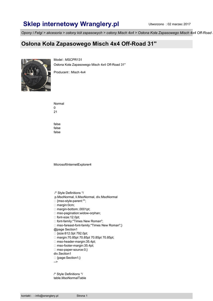 Osłona Koła Zapasowego Misch 4x4 Off-Road 31