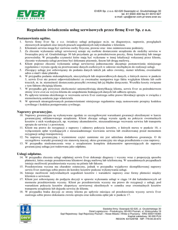 Regulamin Świadczenia usług serwisowych przez firmę Ever
