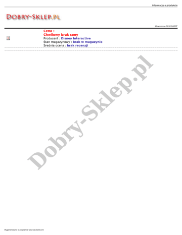 Informacje o produkcie Utworzono 02-03-2017 Cena : Chwilowy brak ceny D ob ry - Sk le p. pl Producent : Disney Interactive Stan magazynowy : brak w magazynie Średnia ocena : brak recenzji Wygenerowano w programie www.oscGold.com