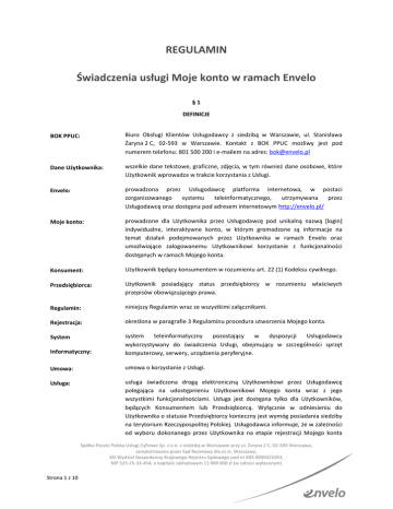 REGULAMIN Świadczenia usługi Moje konto w ramach Envelo