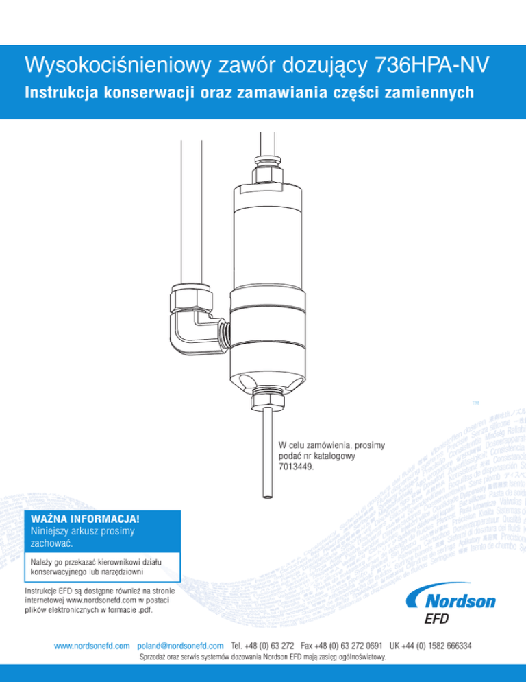 Wysokociśnieniowy zawór dozujący 736HPA-NV