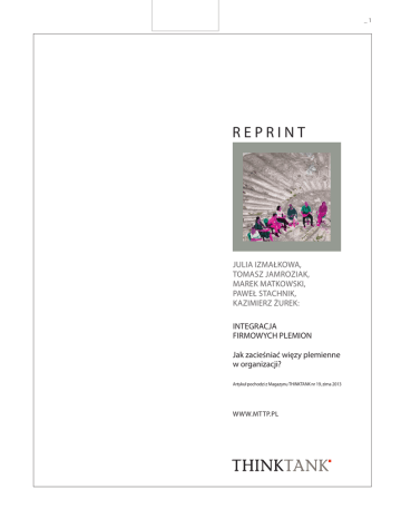 _1 X EX PX RX IXN T R JULIA IZMAŁKOWA, TOMASZ JAMROZIAK, MAREK MATKOWSKI, PAWEŁ STACHNIK, KAZIMIERZ ŻUREK: INTEGRACJA FIRMOWYCH PLEMION Jak zacieśniać więzy plemienne w organizacji? Artykuł pochodzi z Magazynu THINKTANK nr 19, zima 2013 WWW.MTTP.PL z a r z ą d z a n i e lu d ź m i _ T E K S T > Julia Izmałkowa, Tomasz Jamroziak, Marek Matkowski, Paweł Stachnik, Kazimierz Żurek IV Integracja firmowych plemion Wzmacnianie relacji między pracownikami przekłada się na wyższą efektywność ich działania. FOT.: Jupiter images Jednym ze sposobów na silniejszą integrację jest odwołanie się do kultury plemiennej. 2_3 LIDER Tech-Pol to średniej wielkości firma technologiczna. Każdy z jej pracowników jest przekonany o własnej wartości i o tym, że daje z siebie więcej niż inni koledzy z biura. Prezes wciąż mówi o pracy zespołowej, ale w rzeczywistości zachęca do postępowania zgodnie z etosem „samotnego wojownika”. Niestety, Tech-Pol wciąż przegrywa z konkurencyjnym przedsiębiorstwem – Robotik. W Tech-Polu chodzą słuchy, że pracownicy Robotika mają zupełnie inne zwyczaje: świetnie się bawią podczas pracy, prowadzą szczere spotkania, mogą wpływać na obowiązujący w firmie system pracy. Razem z szefem wypracowali zestaw zasad, które wszyscy dobrowolnie przyjmują jako własne. Oto dwie firmy tej samej wielkości pracujące w tej samej branży, ale o zupełnie innych kulturach. Te dwa hipotetyczne przedsiębiorstwa znajdują się na różnych poziomach rozwoju „życia plemiennego”. Firma, która potrafi umiejętnie zarządzać kulturą plemienną pracowników, wkrótce wyprzedzi konkurencję. Jak robić to w praktyce? Życie plemienne wczoraj i dziś Definicja słownikowa mówi, że plemię to „grupa rodów wywodzących się od wspólnego przodka, zamieszkujących dany obszar i związanych wspólnotą organizacji społecznych”. Słowo to dawniej oznaczało po prostu potomstwo albo pokolenie (i pochodziło od słowa „płód”). Natomiast w socjologii zjawisko plemienności nazywa się trybalizmem (z ang. tribal, czyli plemię, to z kolei pochodzi z łac. tribus – w starożytnym Rzymie jednostka podziału terytorialno-administracyjnego państwa). Tradycyjne społeczności plemienne (takie jak np. plemiona Tutsi czy Hutu w Rwandzie) jednoczą się wokół wspólnych wartości, aby przetrwać w walce o ograniczone zasoby. Członkowie plemienia mają świadomość bliskiego pokrewieństwa, posługują się tym samym dialektem i są połączeni wspólnym systemem obrzędów. Plemiona są zatem rodzajem przedpaństwowej formy organizacji społeczeństw. Jednak współcześnie przytoczone wcześniej definicje plemienności ulegają poszerzeniu. Francuski socjolog Michel Maffesoli w wydanej w latach 90. ubiegłego wieku książce Czas plemion. Schyłek indywidualizmu w społeczeństwach ponowoczesnych (wydanie polskie z 2008 r.) stawia hipotezę, że trybalizm przenika w coraz większym stopniu styl życia współczesnych społeczeństw zachodnich. Takie grupy plemienne jego zdaniem nie muszą być ze sobą spokrewnione. Jednoczą się wokół wspólnego celu nie tylko ze względu na poszukiwanie wspólnych korzyści, ale również z powodu samego pożądania poczucia wspólnotowości, wyrażającego się przez wspólne rytuały i symbole. W tym ujęciu plemienność jest sposobem na redukcję dyskomfortu wynikającego z poczucia alienacji. Liberalne społeczeństwa coraz częściej mają bowiem charakter atomowy – więzy jednostki z państwem, grupą etniczną czy religią się osłabiają. Rosną natomiast więzy z „plemionami” – grupami skupionymi wokół jednego celu, aktywności, wspólnych wartości. We współczesnych warunkach plemieniem może być ruch walczący o równouprawnienie kobiet, grupa kibiców podczas zgromadzeń sportowych, ale też personel pielęgniarski w jednym szpitalu czy dział badań firmy technologicznej. Renesans myślenia o plemienności przyniosła w ostatnich latach popularyzacja internetu. Amerykański ekspert marketingu Seth Godin w książce Plemiona 2.0. Zostań internetowym przywódcą stawia tezę, że współczesne plemiona mogą rozszerzać swoje pole oddziaływania dzięki internetowi i tworzyć „wirtualne społeczeństwa plemienne” nieznające barier geograficznych. Plemienność w twojej firmie Również współczesne teorie zarządzania i przywództwa nawiązują do zjawiska trybalizmu. Fenomen występowania plemion w organizacjach opisali w książce Przywództwo plemienne Dave Logan, John King i Halee Fischer-Wright. Według nich firmowe plemiona to dziś grupy 20–150 osób. Wieloletnie badania autorów, prowadzone z udziałem 24 tys. pracowników, dowodzą, że w firmach „plemiona” mogą występować na pięciu etapach rozwoju. Na każdym z kolejnych poziomów integracja ich członków jest mocniejsza. Firmy znajdujące się na wyższym etapie zarabiają Główna myśl .Odwołanie się do kultury plemiennej może być sposobem na zwiększenie efektywności działania zespołów. .Każdy zespół może się znajdować na jednym z pięciu etapów rozwoju więzi między pracownikami. .Lider poprzez tworzenie odpowiednich warunków pracy, atmosfery zaufania i szczerości może motywować zespół do awansowania w hierarchii życia plemiennego. z a r z ą d z a n i e lu d ź m i _ więcej, bo ich pracownicy mają większy komfort pracy. Mała firma to małe plemię, duża składa się z wielu plemion, które mogą być na różnych poziomach rozwoju. Takie grupy mogą mieć liderów, którzy oddziałują na kulturę plemienną poprzez odpowiedni język i zachowania. Na czym praktycznie polega funkcjonowanie plemion w organizacjach i jakie ma to znaczenie dla liderów? spotkaniach starają się przede wszystkim wykazać własną przewagę. Wiele zespołów i sporo osób nie wznosi się ponad trzeci etap życia plemiennego przez całą karierę zawodową. Tymczasem dopiero na eta