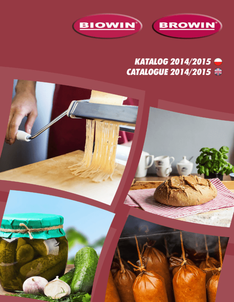 KATALOG 2014/2015 CATALOGUE 2014/2015 Firma BIOWIN, założona w 1977 roku, obecnie jest niekwestionowanym liderem na rynku akcesoriów do domowego wyrobu wina, piwa oraz innych alkoholi i przetworów. W związku z nieustannie poszerzającą się ofertą produktów browarniczo-spożywczych specjalnie dla nich została wprowadzona nowa marka - BROWIN. Tym samym firma zmieniła nazwę na BROWIN Spółka z ograniczoną odpowiedzialnością Sp. k. jednocześnie zachowując w swojej ofercie produkty pod marką BIOWIN. Jesteśmy również największym w Europie Środkowej producentem termometrów, barometrów i higrometrów, które dostarczamy na rynek pod markami BIOTERM, SOENS i 2MEASURE. Podążając za ideą ekologii i zgodności z naturą powstała marka BIOOGRÓD. Dzięki niej jesteśmy w stanie sprostać oczekiwaniom nawet najbardziej wymagającego ogrodnika. My też chcemy rozwijać naszą pasję! Dlatego serdecznie zapraszamy do odwiedzenia naszego salonu firmowego. Mogą tu Państwo obejrzeć wszystkie proponowane przez nas produkty, zasięgnąć porady, wymienić doświadczenia, czy też pochwalić się własnymi osiągnięciami. Jesteśmy zawsze do Państwa dyspozycji. Każdego miesiąca odbywają się w naszym salonie specjalne pokazy szkoleniowe dla wszystkich winiarzy, piwowarów i hobbystów. Na stronie internetowej www.biowin.pl znajdą Państwo plany najbliższych prezentacji. BIOWIN Company was established in 1977. Nowadays BIOWIN is unquestioned leader of the market of accessories for home making wine , beer and other kinds of alcohols and preserves . We constantly expand the range of brewing and food processing products so we introduced the new brand BROWIN especially for them . The same, company changed its name to BROWIN Limited Liability Company Sp. k. while maintaining all the products signed BIOWIN in the regular offer . BIOWIN is also the largest in Central Europe producer of thermometers, barometers and hygrometers which we supply to the market under the following brands : BIOTERM, Soens and 2MEASURE. As the highly eco - oriented company we follow the idea of ecology and living according to the nature so we created the brand BIOOGROD . We are able to meet the expectations of the most demanding gardeners. We permanently develop our passion! That is why we kindly invite you to visit our showroom to get known all our products , seek advice and exchange experiences. We want you to be proud of your own achievements. Every month we organize the special trainings, presentations and lectures for all winemakers , brewers and hobbyists in our homebase in Łódź. Please check next meeting on our website www.biowin.pl and join us to share the passion !!! symbol wymiary 600325 90x140mm art. no. rodzaj opakowania 60 packaging type dimensions luz karton blister lub torebka z etykietą torebka foliowa puszka ilość w opakowaniu zbiorczym quantity of master carton loose carton blister or header card & polybag polybag can 93-373 Łódź, Polska; ul. Pryncypalna 129/141 tel.: +48 (42) 2323200; fax: +48 (42) 2323295 www.biowin.pl Zapraszamy serdecznie! / We are looking forward to doing business with you! Twój lokalny dystrybutor 2014.08.14 BIOWIN Spółka z ograniczoną odpowiedzialnością sp. k. ...bo domowe jest lepsze! Wędzarnie ogrodowe z termometrem drzwiczki na zawiasach, termometr, haki wędzarnicze - 3 szt. Garden smokehouses with thermometer hinged door, thermometer, smokehouse hooks - 3 pcs. 330208 330109 39 x 28 x 115 cm 39 x 28 x 80 cm 1 1 Wędzarnia ogrodowa z termometrem drzwiczki przesuwne, termometr, haki wędzarnicze - 3 szt. Garden smokehouse with thermometer sliding door, thermometer, smokehouse hooks - 3 pcs. 330208 330108 39 x 28 x 80 cm 1 Haki do wędzarni tradycyjne - 5 szt. Traditional smokehouse hooks - 5 pcs. 311201 Ø3 mm / 13 cm 10 Haki do wędzarni - do ryb - 5 szt. Smokehouse hooks for fish screwed - 5 pcs. 10 311301 Ø3 mm / 17 cm Potrójne haki do wędzarni - do ryb - 5 szt. Triple smokehouse hooks for fish screwed - 5 pcs. 10 311302 Ø3 mm / 20 cm Wędzarnia z termometrem Smokehouse with thermometer 330001 42,5 x 27,5 x 21 cm 330109 1 330108 311201 311301 311302 Szczotka skrobak do grilla/wędzarni Brush scraper grill/smokehouse 331001 4 x 7 x 31cm 20 Generator dymu + zrębki 100g Smoke generator + woodchips 100g 332001 10,6 x 10,7 x 2,7cm 4 Generator dymu Smoke generator 332002 22,7 x 15,2 x 3,7cm 330001 2 www.biowin.pl 3 Zrębki do wędzenia i grillowania Woodchips for smoking and grilling 780104 buk / beech 750 g 5 750 g 780204 olcha i buk / alder and beech 5 450 g 780304 śliwa / plum-tree 5 450 g 780404 czereśnia / cherry 5 450 g 780504 jabłoń / apple-tree 5 780604 grusza / pear 5 450 g 331001 332001 332002 Stojak na wędliny Meat stand 311501 68x32x75 cm 1 Zestaw wędliniarski do peklowania w zestawie: beczka, worki, mieszanka przypraw, saletra potasowa, siatka wędliniarska, poradnik wędliniarski, przepis na szynkę peklowaną - pieczoną Ham curing kit set contains: barrel, plastic bags, blend of herbs, saletpetre, meat mesh, guide, recipe for pickled and roasted ham 319901 25x25x29 cm 1 Saletra potasowa do peklowania mięsa Saletpetre for meat curing sal 20 g 20 Siatki wędliniarskie do pieczenia, wędzenia, peklowania, 300°C Meat meshes for roasting, smoking, curing, 300°C 310102 150 / 24 mm x 5 m 220 / 36 mm x 4 m 310103 10 10 780104 780304 780204 780404 780504 780604 Osłonka poliamidowa wędliniarska do parzenia, wędzenia - 125°C Polyamide casing for steaming or smoking - 125°C 311501 Ø73 mm / 8 m 10 Nici wędliniarskie do pieczenia, wędzenia, parzenia, 300°C Sausage threads for roasting, smoking and blanching, 300°C 310201 100 g 10 311501 Osłonka białkowa wędliniarska do parzenia, wędzenia - również na zimno, 100°C Protein casing for steaming or smoking - also for cold smoking, 100°C 10 310301 Ø55 mm / 4 m Osłonka tekstylna wędliniarska do parzenia - wsad 3 kg, 100°C Fabric casing for blanching - 3 kg of stuff