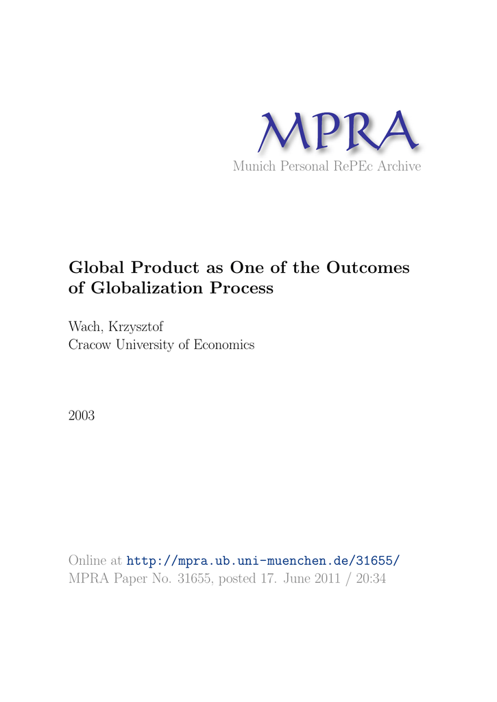 M PRA Munich Personal RePEc Archive Global Product as One of the Outcomes of Globalization Process Wach, Krzysztof Cracow University of Economics 2003 Online at http://mpra.ub.uni-muenchen.de/31655/ MPRA Paper No. 31655, posted 17. June 2011 / 20:34 P R A C E N A U K O W E A K A D E M I I E K O N O M I C Z N E J W E W R O C Ł AW I U Nr 976 2003 Regionalizacja i globalizacja w gospodarce światowej Krzysztof Wach Akademia Ekonomiczna w Krakowie PRODUKT GLOBALNY JAKO JEDEN Z EFEKTÓW PROCESU GLOBALIZACJI Wprowadzenie Obecnie dominuje w społeczności międzynarodowej przekonanie, że otwiera się nowa epoka – czas globalizacji problemów politycznych, ale przede wszystkim ekonomicznych. Istnieje niewątpliwie wiele cech, chociażby kulturowych, różniących poszczególne społeczeństwa rozproszone po wszystkich zakątkach naszego globu, jednakże obserwując zjawiska zachodzące niemalże w każdej dziedzinie życia1 dostrzec z łatwością można narastające procesy globalizacyjne. W ciągu ostatnich kilkunastu lat procesy integracyjne i wzajemne zależności oraz powiązania w gospodarce światowej zaczęły przybierać na znaczeniu, a rozwój światowej sieci komputerowej przyczynił się do wzrostu procesów globalizacyjnych. W związku z narastającymi procesami globalizacyjnymi w gospodarce światowej na rynku pojawiają się produkty, które zasługują na miano produktów globalnych, gdyż występują na większości rynków naszego globu w formie ujednoliconej. Celem niniejszego artykułu jest zaprezentowanie produktu globalnego jako jednego z efektów procesów globalizacyjnych w gospodarce światowej. 1 w sferze politycznej, w kulturze, w dziedzinie ochrony środowiska, w telekomunikacji, czy też w sferze ekonomii międzynarodowej 411 P R A C E N A U K O W E A K A D E M I I E K O N O M I C Z N E J W E W R O C Ł AW I U Nr 976 2003 Regionalizacja i globalizacja w gospodarce światowej Standaryzacja produktów Jedną z podstawowych decyzji strategicznych, jakie musi podjąć firma dokonująca internacjonalizacji swoich produktów jest ustalenie stopnia standaryzacji produktu na poszczególnych rynkach. Można wyróżnić trzy podstawowe strategie produktu występujące na rynkach międzynarodowych: strategię standaryzacji, strategię adaptacji oraz strategię dyferencjacji. Standaryzacja to wprowadzenie na rynek międzynarodowy (globalny) przez firmę swoich produktów bez żadnych zmian. Pozwala to głównie na obniżenie kosztów produkcji, dystrybucji i marketingu. Standaryzacja ułatwia również zachowanie jednolitego wizerunku firmy i/lub produktu. Strategia adaptacji polega natomiast na dostosowaniu wprowadzanych produktów do wymogów nowego rynku. Produkty podlegają adaptacji głównie ze względu na odmienność kulturową oraz różne wymagania techniczne. Adaptacja jest formą pośrednią pomiędzy standaryzacją, a dyferencjacją, która jest trzecią strategią produktu występującą w marketingu międzynarodowym. Polega na oferowaniu zróżnicowanych produktów na poszczególnych rynkach narodowych. Główną wadą tej strategii są wysokie koszty jest wprowadzenia. Typy strategii produktu na rynku międzynarodowym zostały graficznie przedstawione na rysunku 1. Rysunek 1. Strategia produktu na rynku globalnym Źródło: opracowanie własne T.Levitt uważa, że świat staje się wspólnym rynkiem, na którym ludzie, bez względu na to gdzie mieszkają, pragną tych samych produktów i tego samego stylu życia. Ujednolicenie się potrzeb konsumentów na całym świecie jest głównym bodźcem 412 P R A C E N A U K O W E A K A D E M I I E K O N O M I C Z N E J W E W R O C Ł AW I U Nr 976 2003 Regionalizacja i globalizacja w gospodarce światowej stymulującym standaryzację produktów oraz globalizację przekazu reklamowego. Wymagania klientów w stosunku do niektórych grup produktów są zunifikowane na całym świecie. Przykładem takich produktów mogą być wyroby farmaceutyczne. Lekarstwa mogą podlegać pełnej standaryzacji, gdyż większość chorób ma taki sam charakter na całym świecie. Obecnie zanikają również upodobania kulinarne i dietetyczne. Potrawy orientalne na dobre zagościły w barach europejskich, czy amerykańskich. Również potrawy europejskie są sprzedawane w Azji. Grupę produktów o wysokim poziomie globalnej standaryzacji stanowią komputery. Producenci komputerów z łatwością mogą standaryzować zarówno sprzętu (hardware) jak i oprogramowania (software). Ze względu na różnice językowe oraz systemy metryczne (np. instalacje elektryczne), niektóre elementy sprzętu komputerowego oraz oprogramowania wymagają jednak adaptacji. Strategia standaryzacji produktu może być wykorzystana przez firmę, gdy spełnione jest kilka podstawowych warunków, które zostały przedstawione w tabeli 1. Tabela 1. Przesłanki oraz warunki standaryzacji produktów Źródło: opracowanie własne na podstawie: R.Zembura, Koncepcja produktu w marketingu międzynarodowym. Pomocnicze materiały dydaktyczne, AE, Kraków 2000, s.6-7 Wzrasta liczba konsumentów (zwłaszcza turystów) na całym świecie, którzy poszukują produktów wystandaryzowanych. Wielu klientów, podróżując po świecie, kupuje czekoladę jako prezent dla kogoś (lub dla siebie samego). Łatwość przystosowania smaku 413 P R A C E N A U K O W E A K A D E M I I E K O N O M I C Z N E J W E W R O C Ł AW I U Nr 976 2003 Regionalizacja i globalizacja w gospodarce światowej czekolady przez dołączanie do jej składu miejscowych składników (np. orzechów macadamia na Hawajach, czy owoców kiwi w Nowej Zelandii) też zachęca podróżnych do jej kupowania za granicą. Podróżujący po całym świecie klienci spotykają się z różnymi odmianami czekolady, co pozwala określić globalne standardy postrzeganej przez klientów jej jakości oraz smaku. Dla przykładu Polacy preferują czekoladę mniej słodką niż konsumenci w Europie Zachodniej, dlatego zagraniczne f