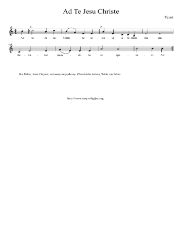 Ad Te Jesu Christe Teizé 4 Ad 5 Sal 1. 2. te va Je tor su Chris mun te di, le in wa te vi a spe Ku Tobie, Jezu Chryste, wznoszę moją duszę. Zbawicielu świata, Tobie zaufałem. http://www.nuty.religijne.org ni mam ra me am. vi, Ad