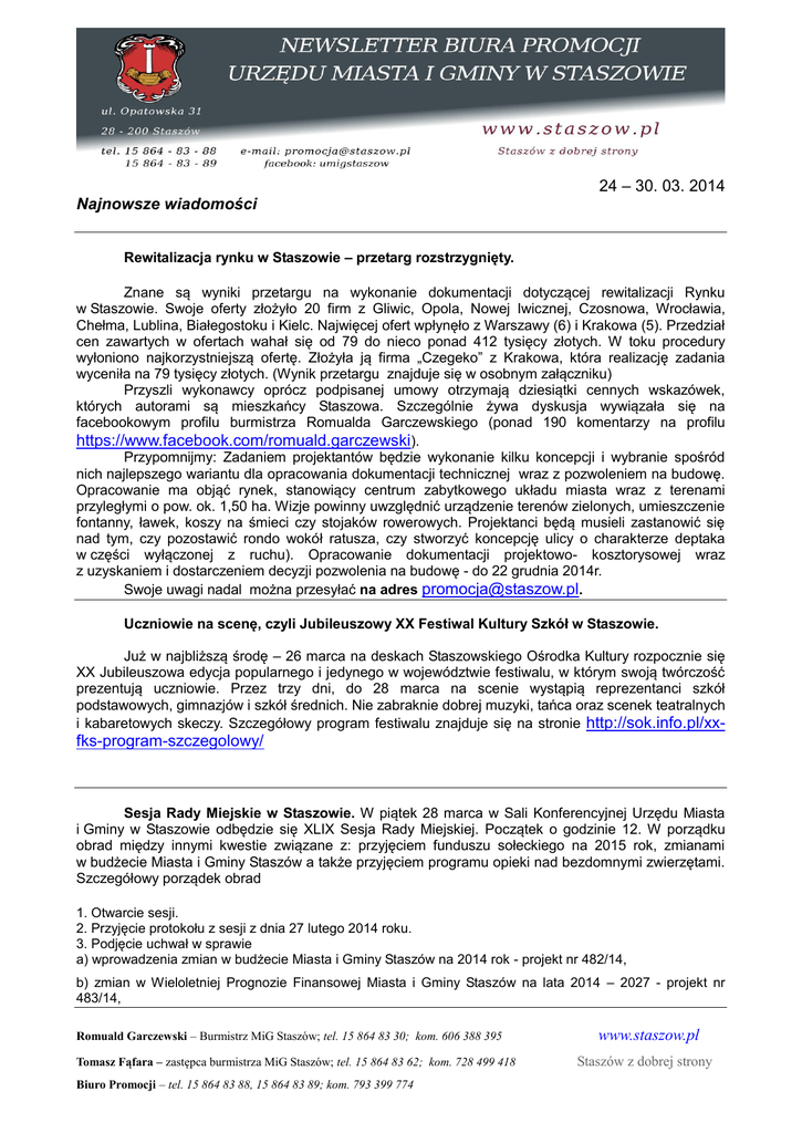 Newsletter Urzędu Miasta i Gminy w Staszowie na
