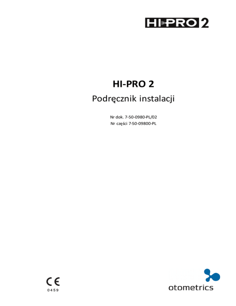 HI-PRO 2 Podręcznik instalacji Nr dok. 7-50-0980-PL/02 Nr części 7-50-09800-PL Informacja o prawach autorskich Żadna część niniejszej dokumentacji lub programu nie może być kopiowana,powielana, przechowywana w systemach wyszukiwania informacji ani przesyłanaw jakiejkolwiek formie lub za pomocą jakichkolwiek urządzeń (elektronicznych, mechanicznych, fotokopiujących,rejestrujących lub innych) bez uprzedniej pisemnej zgody firmy GN Otometrics A/S. Copyright© 2015, GN Otometrics A/S Opublikowane w Dania przez GN Otometrics A/S, Dania Wszystkie informacje, ilustracje i specyfikacje zawarte w niniejszympodręczniku są oparte na najbardziej aktualnych danych dotyczących produktu dostępnych w momencie publikacji. Firma GN Otometrics A/S zastrzegasobie prawo do wprowadzania zmian w dowolnej chwili bez uprzedniego powiadomienia. Zastrzeżone znaki towarowe i znaki towarowe MADSEN Itera II,MADSEN OTOflex 100, OTOsuite, AURICAL FreeFit,AURICAL Visible Speech, MADSEN Astera², MADSEN Xeta, ICS Chartr 200 VNG/ENG, ICS Chartr EP, OTOcam 300, MADSEN AccuScreen, MADSEN AccuLink, ICS AirCal, AURICAL Aud, AURICAL HIT, ICS Impulse, OTObase i MADSEN Capella²to zastrzeżone znaki towarowe lub znaki towarowe firmy GN Otometrics A/S. Data premiery wersji 09.07.2015 (111591) Pomoc techniczna Należy skontaktować się z dostawcą. 2 Otometrics - HI-PRO 2 Spis treści 1 Wprowadzenie do systemu HI-PRO 2 4 2 Po otrzymaniu urządzenia HI-PRO 2 5 3 Instalacja 7 4 Serwis i konserwacja 9 5 Bezpieczeństwo 10 6 Dane techniczne 14 Otometrics - HI-PRO 2 3 1 Wprowadzenie do systemu HIPRO 2 Jednostka programowania aparatu słuchowego HI-PRO 2 wraz z oprogramowaniem dopasowującym i kablami programowania tworzy kompletny system HI-PRO 2. Sprzęt HI-PRO 2 służy jako standardowy interfejs między komputerem a programowalnymi aparatami słuchowymi. Połączenie z komputerem jest zapewniane przez dostarczony kabel USB (uniwersalnej magistrali szeregowej). Połączenie USB zapewnia zasilanie i transmisję danych między komputerem a urządzeniem HI-PRO 2. W przedniej części obudowy znajdują się dwa 6-biegunowe złącza mini-DIN dla przewodów programowalnych aparatów słuchowych, które ułatwiają programowanie prawego i lewego aparatu słuchowego. Oprogramowanie komputerowe do programowania aparatu słuchowego (oprogramowanie dopasowujące) i kable umożliwiające podłączenie aparatów słuchowych do urządzenia HI-PRO 2 są dostarczane przez producenta aparatu słuchowego. 1.1 Przeznaczenie Urządzenie HI-PRO 2 jest przeznaczone dla audiologów, dystrybutorów aparatów słuchowych i innych pracowników służby zdrowia. Urządzenie jest przeznaczone do wprowadzania wymaganych regulacji programowalnych aparatów słuchowych podłączonych do urządzenia HI-PRO 2. 1.2 Informacje o tym podręczniku Ten podręcznik stanowi przewodnik dotyczący instalacji i użytkowania systemu HIPRO 2. Zdecydowanie zalecamy uważne przeczytanie go przed przystąpieniem do używania systemu HI-PRO 2. Ten podręcznik zawiera opis głównych funkcji systemu HI-PRO 2. Firma GN Otometrics zaleca zapoznanie się zwłaszcza z następującymi kwestiami: 4 • Po otrzymaniu urządzenia HI-PRO 2 ► 5 • Instalacja ► 7 • Bezpieczeństwo ► 10 Otometrics - HI-PRO 2 1.2.1 Bezpieczeństwo Niniejszy podręcznik zawiera informacje, do których należy się stosować, aby zapewnić bezpieczne użytkowanie urządzenia HI-PRO 2. W każdym przypadku należy się też stosować do obowiązujących przepisów lokalnych. W odpowiednich miejscach zamieszczono informacje dotyczące bezpieczeństwa, a ogólne aspekty bezpieczeństwa opisano w części Bezpieczeństwo ► 10. 1.2.2 Konwencje typograficzne Użycie symboli Ostrzeżenie, Zachować ostrożność oraz Uwaga W podręczniku są używane następujące symbole ostrzegawcze w celu zwrócenia uwagi na informacje dotyczące bezpiecznego i prawidłowego używania urządzenia lub oprogramowania: Ostrzeżenie • Oznacza, że występuje ryzyko śmierci lub odniesienia poważnych obrażeń przez użytkownika lub pacjenta. Zachować ostrożność • Oznacza, że występuje ryzyko odniesienia obrażeń przez użytkownika lub pacjenta bądź ryzyko uszkodzenia danych lub urządzenia. Uwaga • Oznacza, że należy zwrócić szczególną uwagę. 2 Po otrzymaniu urządzenia HI-PRO 2 2.1 Rozpakowywanie i kontrola 1. Należy ostrożnie rozpakować urządzenie HI-PRO. Po rozpakowaniu urządzenia HI-PRO 2 warto zatrzymać oryginalne opakowanie. W przypadku konieczności przesłania urządzenia HI-PRO 2 do serwisu oryginalne opakowanie będzie stanowić ochronę przed uszkodzeniami. Otometrics - HI-PRO 2 5 2. Obejrzyj urządzenie i sprawdź, czy nie doszło do żadnych uszkodzeń. W przypadku ich wystąpienia nie uruchamiaj urządzenia HI-PRO 2. Skontaktuj się z dostawcą w celu uzyskania pomocy. 3. Sprawdź, czy w opakowaniu znajdują się elementy wymienione poniżej: – Urządzenie HI-PRO 2 – Kabel interfejsu USB – Oprogramowanie Instalacja Dysk CD – Instalacja Instrukcja 4. Jeśli się okaże, że zestaw jest niekompletny, skontaktuj się z dostawcą. 2.2 Widok z przodu i z tyłu urządzenia HI-PRO 2 Widok z przodu urządzenia HI-PRO 2 Widok z tyłu urządzenia HI-PRO 2 2.3 Przechowywanie i transport W przypadku konieczności przechowywania urządzenia HI-PRO 2 przed rozpoczęciem korzystania z niego należy postępować zgodnie z poniższymi wskazówkami: 6 • Urządzenie HI-PRO 2 i jego akcesoria należy przechowywać w dołączonym miękkim futerale, chroniącym sprzęt przed uszkodzeniem. • Urządzenie HI-PRO 2 należy przechowywać zgodnie z zasadami opisanymi w części Przechowywanie i obsługa ► 15. Otometrics - HI-PRO 2 3 3.1 Instalacja • Umieść urządzenie HI-PRO 2 w dobrze wentylowanym miejscu, z dala od wszelkich płynów i źródeł ciepła. • Do urządzenia HI-PRO 2 jest dołączony instalacyjny dysk CD. Przed podłączeniem urządzenia HI-PRO 2 do komputera