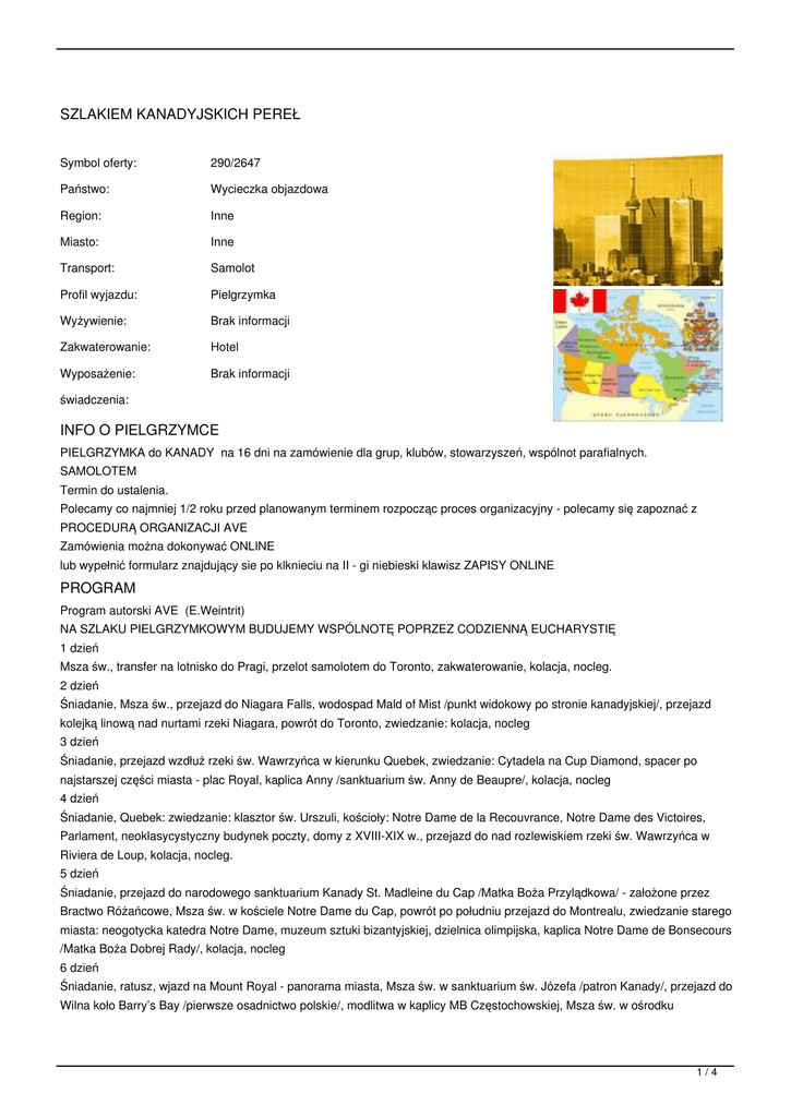 PIELGRZYMKA do KANADY na 16 dni na zamówienie dla grup, klubów, stowarzyszeń, wspólnot parafialnych.