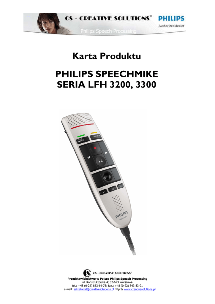 Karta Produktu PHILIPS SPEECHMIKE SERIA LFH 3200, 3300
