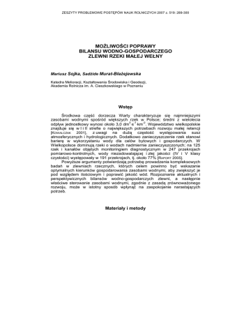 MOśLIWOŚCI POPRAWY BILANSU WODNO