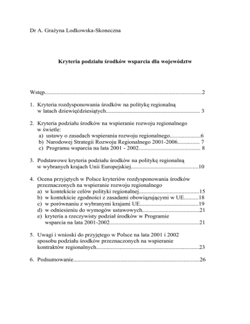 Dr A. Grażyna Lodkowska-Skoneczna Kryteria podziału środków