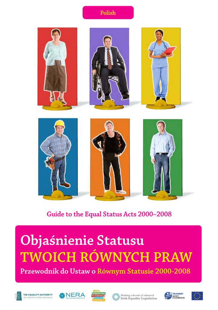 Polish Guide to the Equal Status Acts 2000–2008 Objaśnienie Statusu Twoich Równych Praw Przewodnik do Ustaw o Równym Statusie 2000-2008 Marking a decade of enhanced Irish Equality Legislation Ustawy o Równym Statusie 2000-2008 Broszura przedstawia główne elementy Ustawy o Równym Statusie 2000. Ustawa została znowelizowana stosownie do Ustawy o Równości 2004, Ustawy o Niepełnosprawności 2005 i Prawa Cywilnego (postanowienia ogólne) 2008. Są one ogólnie znane jako Ustawy o Równym Statusie 2000-2008. Egzemplarze ustaw dostępne są w Rządowym Biurze Sprzedaży Publikacji przy Molesworth Street, Dublin 2, (01) 647 6000 lub na stronie internetowej www.oireachtas.ie Dostępne są również na stronie www.equality.ie Ustawa o Równym Statusie 2000 i Ustawa o Równości 2004 starają się wprowadzić w życie Unijną Ustawę o Równości Rasowej.1 Ustawa o Równym Statusie 2000, Ustawa o Równości 2004 i Prawo Cywilne (postanowienia ogólne) starają się wprowadzić w życie Dyrektywę o Równości Płci w dostępie do towarów i usług.2 Te dyrektywy zakazują dyskryminacji na tle rasowym bądź etnicznym lub ze względu na płeć i są nadrzędne wobec prawa irlandzkiego. Dyrektywa samorządowa 2000/43/KE z 29 czerwca 2000 wprowadza w życie zasadę równego traktowania pomiędzy osobami bez względu na rasowe lub etniczne pochodzenie. 1 Dyrektywa smorządowa 2004/113/KE z 13 grudnia 2004 wprowadza w życie zasadę o równym traktowaniu kobiet i mężczyzn w dostępie do towarów i usług oraz w zaopatrywaniu się w nie. 2 Postanowienia Ustaw o Równym Statusie 2000-2008 w odniesieniu do rasy, społeczności Travellersów i płci muszą być czytane i interpretowane w świetle tych dyrektyw. Ta broszura jest przeznaczona tylko dla celów informacyjnych. To nie jest dokument prawny. 2 Objaśnienie Twoich Równych Praw Spis treści 1. 1.1 Zasięg Wprowadzenie 4 1.2 Koncensjonowane przedsiębiorstwa 4 1.3 Obszary 5 1.4 Odstępstwa 7 1.5 Dyskryminacja 1.6 Molestowanie seksualne i nękanie 10 1.7 Polityka równych szans 11 1.8 Prześladowanie 12 1.9 Odpowiedzialność zastępcza 12 1.10 Reklama 12 Towary i usługi 13 2. 4 8 2.1 Co jest zabronione? 2.2 Co to jest usługa? 13 2.3 Usługi publiczne 14 2.4 Odmienne traktowanie jest dozwolone 14 3. 13 3.1 Co jest zabronione? Zakwaterowanie 17 3.2 Ustawy dopuszczające odmienne traktowanie w określonych okolicznościach 17 17 Instytucje edukacyjne 19 4.1 Co jest zabronione? 19 4.2 Ustawy dopuszczające odmienne traktowanie w określonych okolicznościach 19 4. Przewodnik do Ustaw o Równym Statusie 2000-2008 5. 3 5.1 Co to jest grupa dyskryminująca? Grupy dyskryminujące 22 5.2 Co jest dozwolone? 22 5.3 Wdrażanie prawa – Kluby dyskryminujące 23 6. 6.1 Ogólne odstępstwa Odstępstwa statutowe 25 6.2 Niektórzy obywatele z innych krajów 25 6.3 Ryzyko akcji przestępczych lub zakłócenie porządku publicznego Inne odstępstwa 26 6.4 7. 22 25 26 7.1 Krok 1: Pisemne zawiadomienie Wnoszenie roszczenia 27 7.2 Krok 2: Wnoszenie roszczenia 28 7.3 Krok 3: Przed Trybunałem ds. Równouprawnienia 29 27 Załącznik A A.1 Organ ds. Równości 31 A.2 Informacja i wsparcie 31 A.3 Pomoc prawna 31 A.4 Informacja – o równości 32 Załącznik B B.1 Przydatne Adresy Państwowe 31 33 33 4 Objaśnienie Twoich Równych Praw 1. Wprowadzenie Ustawy o Równym Statusie 2000–2008: • • • • zabraniają określonego rodzaju dyskryminacji (z określonymi odstępstwami) w odniesieniu do dziewięciu obszarów; zabraniają molestowania seksualnego i nękania; zabraniają prześladowania; • wymagają godziwego zakwaterowania dla • dopuszczają szeroki zasięg działań zapewniających promują równość; osób niepełnosprawnych; politykę równych szans. 1.1 Zasięg Ustawy mają zastosowanie do osób, które: • • korzystają z szerokiego asortymentu usług lub • nabywają lub sprzedają lokal mieszkaniowy; kupują i sprzedają szeroki wybór towarów; • zapewniają usługi; uczęszczają do placówek edukacyjnych lub nimi kierują. Istnieją osobne przepisy o klubach dyskryminujących. 1.2 Odpowiedzialność zastępcza Roszczenia dotyczące dyskryminacji w stosunku do odpowiedzialności zastępczej są teraz rozpatrywane w Sądzie Okręgowym. Główne ustalenia związane z tematem są zawarte w Ustawie o Napojach Alkoholowych 2003. Przewodnik do Ustaw o Równym Statusie 2000-2008 5 1.3 Obszary Ustawy o Równym Statusie 2000–2008 zabraniają dyskryminacji w odniesieniu do następujących dziewięciu obszarów: • Płeć: mężczyzna, kobieta lub transseksualista3; • Stan cywilny: kawaler/panna, żonaty/mężatka, • Stan rodzinny: w ciąży, rodzic dziecka poniżej 18 lat w separacji, rozwiedziony/a lub wdowiec/wdowa; lub opiekun główny przebywający w domu na stałe, lub rodzic dziecka niepełnosprawnego; • Orientacja seksualna: gej, lesbijka, biseksualista lub • Religia: inne przekonania religijne, pochodzenie, • Wiek: dotyczy wyłącznie osób powyżej 18 roku • heteroseksualista; światopogląd lub jego brak; życia, poza odstępstwami z tytułu ubezpieczenia samochodowego dla posiadających prawo jazdy kierowców poniżej tego wieku; Rasa: określona rasa, kolor skóry, narodowość lub pochodzenie etniczne; Europejski Trybunał Sprawiedliwości w sprawie P przeciwko S wraz z Urzędem Powiatowym Cornwalii stwierdził, że dyskryminacja osoby transseksualnej stanowi przejaw dyskryminacji ze względu na płeć. discrimination fondée sur le motif du sexe. 3 6 Objaśnienie Twoich Równych Praw • • Zbiorowość Travellersów: ludzie, którzy są powszechnie nazywani Travellersami, którzy są identyfikowani przez obie grupy: Travellersów i wszystkich innych jako ludzie ze wspólną historią, kulturą i tradycją, zidentyfikowani historycznie jako nieosiadły sposób życia na wyspie irlandzkiej; Niepełnosprawność: szeroko rozumiana niepełnosprawność dotyczy osób z fizyczną, intelektualną, dotyczącą tru
