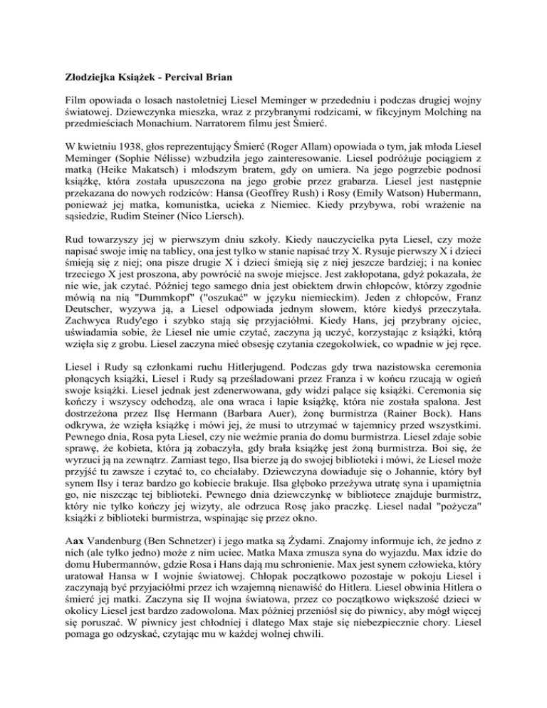 Film opowiada o losach nastoletniej Liesel Meminger w przededniu i podczas drugiej wojny