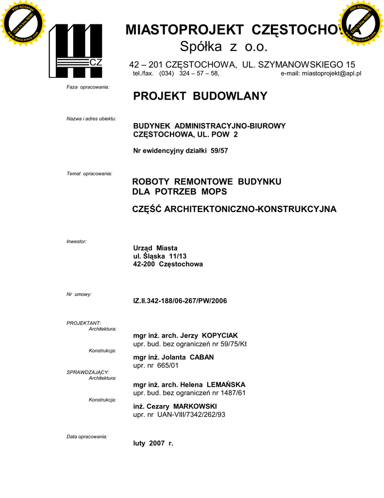 MIASTOPROJEKT CZĘSTOCHOWA Spółka z o.o.