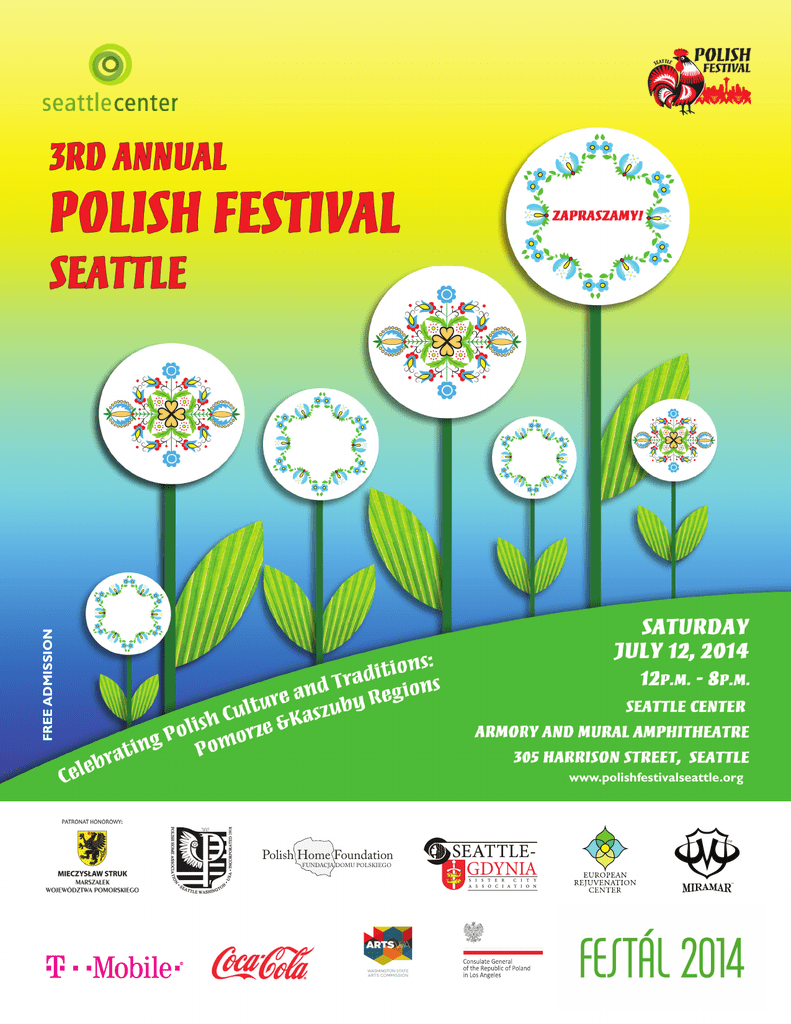 FREE ADMISSION www.polishfestivalseattle.org TM Polish Home Foundation FUNDACJA DOMU POLSKIEGO TM ORGANIZERS 2014 COMMITTEE AND PROJECT COORDINATORS Polish Festival is organized by Polish Home Foundation (PHF) and Polish Home Association (PHA) in partnerships with the Seattle Center and with the collaboration and support from the PolishAmerican community. Special thanks goes to Donata Tiley and Jadzia Witkowska from Portland Polish community for sharing with us the authentic and beautiful costumes from Kaszuby region. Dziękujemy! PRODUCING ARTISTIC DIRECTOR Danuta Moc MANAGING DIRECTOR Teresa Indelak Davis MURAL AMPHITHEATRE Managers Ewa Wheeler Ted Wheeler FINANCES Budget/Grants Lucjan Chowaniec ARMORY Manager Alisa Lahti Governance Andrew Okinczyc Kids Activities Sara Szymula Press Release/ Content Editor Marija Horoszowski Fundraising Andrew Okinczyc Teresa Indelak Davis Danuta Moc Exhibits Krys Poraj-Kuczewski Ads Design Gail Wodzin Marketplace Vendors Kamila Kanczugowski Logo Design Jasiu Pawluskiewicz Beer Garden Marion Ossowski Festival Tickets Booth Lucjan Chowaniec Food Tickets Order Zbigniew Przydzielski Food Vendors Agnieszka Szymula Stage MC Ted Wheeler Joe Marine ADVISORS Rysiek Kott Marysia Grabowska Basia Niesulowska Treasurer Marian Strutynski HOSPITALITY Iwona Biernacka Henia Posluszny TRANSPORT Andrzej Mroz Paweł Krupa Volunteers Aneta Kalicka Alisa Lahti Teresa Indelak Davis Monte Bridges Ewa Dankowska Performers/ Stage Management Barbara Strutynski Stage MC Brad Goode Ted Davis Workshops Monte Bridges Films Zbyszek Pietrzyk SPOTLIGHT DISPLAYS Best of Poland Gail Wodzin Pomorze & Kaszuby Exhibit Joanna Gromadzka Kasia Pietrzyk Passions of Poland Monte Bridges Hanna Karczewski In the photo: Krystyna Untersteiner, Marija Horoszowski, Teresa Indelak Davis, Monte Bridges, Ewa Wheeler, Bartek Nowierski, Danuta Moc, Beata Oprzadek, Alisa Lahti, Antek Haapasaari-Olpinski, Krzystof Poraj-Kuczewski, Kasia Pietrzyk, Zbyszek Pietrzyk, Joanna Gromadzka, Ted Wheeler, Andrzej Mroz 02 [email protected] Polish Organizations in PNW Anna Senczuk PR/MARKETING Teresa Indelak Davis Poster/T-shirt Design Joanna Wróblewska Magazine Design Agnieszka Kroczek Signage Project Ryszard Gawronski Web Master Jarek Predki Photography Piotr Horoszowski Agnieszka Kownacka Video Recording Robert Turski VIP Invites/Hosting Teresa Indelak Davis Info Booth Krystyna Untersteiner Media Sponsors Iza Gabrielson Social Media Karolina Górska WELCOME ZAPRASZAMY–WELCOME! DZIĘKUJEMY–THANK YOU! Welcome to the third annual Polish Festival at the Seattle Center. This year is very special as we present our festival as part of Festál cultural program. Thank you to the Seattle Center, and the City of Seattle for giving the Polish-American community an annual membership to celebrate our heritage for years to come. DANUTA MOC Producing Artistic Director Polish Festival Seattle Thank you to the Governor of Pomerania, city of Gdańsk and Gdynia, and the Best of Poland for providing promotional materials, exhibits, flags and films. It is our great pleasure to introduce you to Polish culture and traditions, with this year’s focus on Pomorze and Kaszuby Regions. The beautiful northern Poland, with its cities of Gdańsk and Gdynia, holds meaningful connections with our community in Seattle. Gdańsk, the City of Freedom, a place of birth of Solidarność Solidarity brought a wave of freedom throughout Poland and Europe. Gdynia and City of Seattle have a long standing cultural and educational Sister City relationship. Please take this opportunity to get to know the celebrated history, vibrant culture and passionate people of Poland through exhibits and interesting short films, live music, dance, workshops, traditional costumes, delicious Polish food and beer. This festival would not be possible without the support of the Polish community organizations, our generous sponsors, dedicated volunteers and talented performers. Special recognition goes to the Ladies Auxiliary of the Polish Home Association for their support and culinary talents in preparing and serving the delicious authentic Polish food. Have fun and enjoy the Passions of Poland at the 2014 Polish Festival Seattle! See you all next year! THANK YOU FOR COMING TO THE FESTIVAL On behalf of the Polish Home Foundation (PHF), and Polish Home Association (PHA), co-organizers of the Festival, we would like to extend a warm welcome. Thank you for coming to the Festival, and your interest in Polish culture and traditions. We have prepared many attractions and hope that everybody will find something interesting. Folk performances, concerts and exhibits along with Polish food and beer all await you here. The Polish community is very excited to present our culture at the Seattle Center for the 3rd year, this time as a member of Festál with many more annual ANDREW celebrations to come. The Festival is a showcase staged by the entire local Polish commuOKINCZYC nity, with its hub at the Polish Hall on Capitol Hill, serving as the Polish Cultural President Polish Home Foundation Center since 1918. We are thankful to all of the local Polish cultural and heritage organizations who contributed enthusiasm, unwavering support, financial assistance and volunteers. We are grateful to the individual supporters and volunteers who have been supporting and working on this festival for the past three years. Their innovation, creativity and tireless perseverance along with Polish pride are what resulted in the Festival you see before you. We would like to thank Seattle Center for organizing and supporting Festál and providing our community along with other ethnic communities an opportunity to present our cultures, which make Seattle such a wonderful and vibrant place to live. We hope you will enjoy the Festival and keep coming back! TERESA INDELAK DAVIS Managing Director Polish Festival Seattle PAWEŁ KRUPA President Polish Home Association 03 Polish Festival Seattle is produced by the 