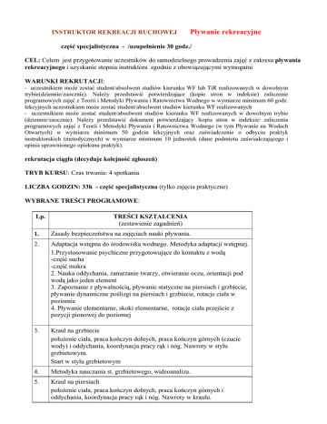 INSTRUKTOR REKREACJI RUCHOWEJ Pływanie rekreacyjne