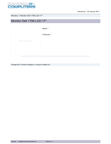 Utworzono : 02 marzec 2017 Monitory > Monitor Dell 1708 LCD 17'' Monitor Dell 1708 LCD 17'' Model : - s r te Producent : - No image C a Dostępność: Produkt dostępny w naszym sklepie od m ro a M kontakt : - [email protected] Strona 1/1 m o u p