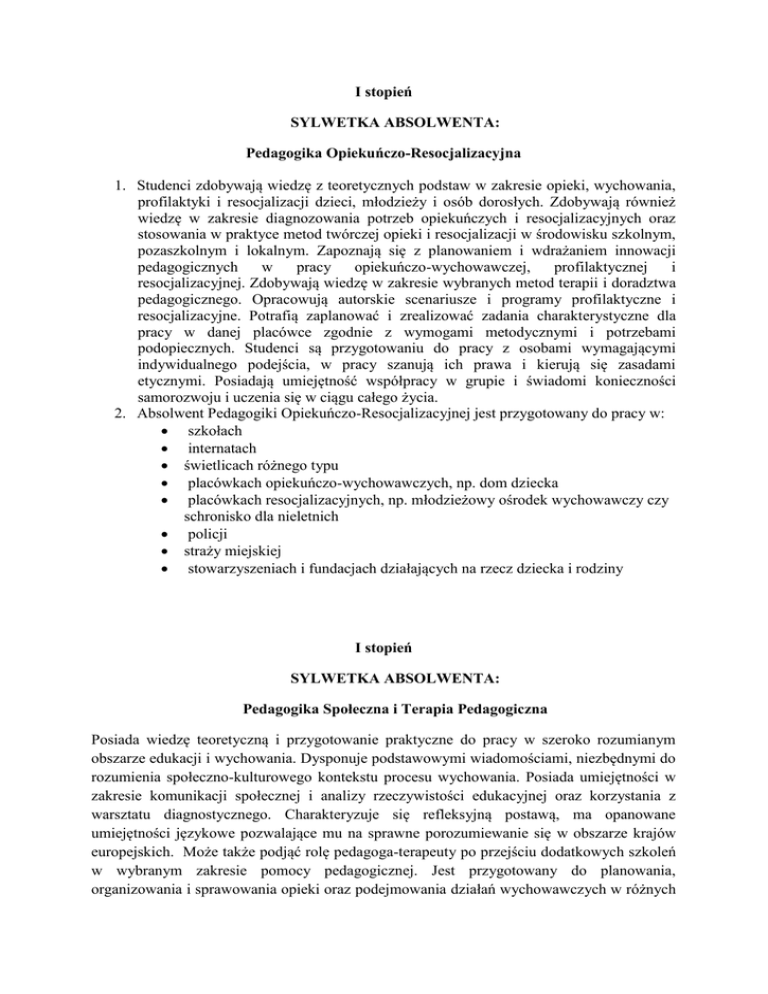 I stopień SYLWETKA ABSOLWENTA: Pedagogika