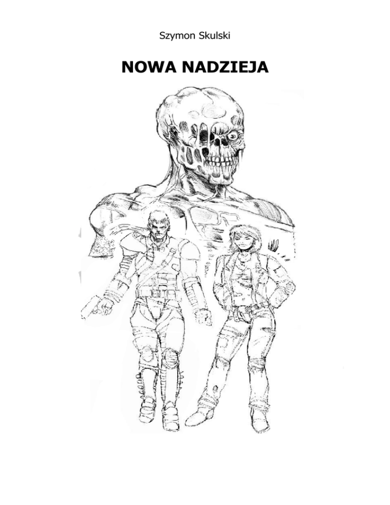 Szymon Skulski NOWA NADZIEJA PROLOG W 2059 ropa naftowa napędzała ponad 97% pojazdów i maszyn na całym świecie, w związku z czym stała się najbardziej poŜądanym surowcem. Nietrudno się domyśleć, iŜ potęŜne państwa zapragnęły mieć ją tylko dla siebie. 2060 rok był rokiem ogromnych sporów, zbrojeń wojennych i oczekiwania. Na początku 2061 Rosja atakuje USA i przyłącza do siebie mniejsze państwa takie jak Polska, Białoruś, Kazachstan, Unia Europejska w obawie przed konfliktem nie reaguje. Potem sprawy toczą się juŜ szybko, Chiny stają się agresywne i atakują bronią chemiczną. Rozpoczyna się wojna ogarniająca swymi szponami cały świat, nazwana potem wielką wojną. Następnie w mgnieniu oka świat zalewa fala radioaktywnych płomieni, wrzące morza wylewają… Nasza matka ziemia i wszystko to, co wspólnie tworzyliśmy od tysięcy lat, w ciągu kilku nanosekund odeszło w wieczną niepamięć. Lecz jest jeszcze nadzieja - niektórzy ludzie w obawie przed wiszącym w powietrzu kataklizmem, nie szczędząc pieniędzy, wybudowali schrony mające ich ocalić. Jednym z nich był wybudowany w małej wsi na zachodzie Europy przez jakiegoś bezimiennego biznesmena schron, w którym, w zamian za milczenie pozwolił Ŝyjącym tam ludziom zamieszkać razem ze sobą. Potem, gdy po 70 długich latach wyszli na powierzchnie zastali zgliszcza swych domów. Zbudowali wioskę, która została nazwana Arogo. Przez jakiś zapomniany juŜ dziś spór, grupa ludzi odeszła na wschód budując tam swoją wioskę o nazwie Erie. Po dziś dzień walczą ze sobą, choć nikt nie pamięta, dla czego. Czy w tym pozbawionym sprawiedliwości świecie jest jeszcze miejsce na prawdziwą miłość. . . ROZDZIAŁ 1 NOCNY MARATON Dowiemy się o tajemnicy i demonach(>???) Szybciej, nie mogę się spóźnić, tylko ta jedna myśl kłębiła się w głowie młodego Forsa. -Co mi strzeliło do głowy Ŝeby pomagać ojcu przy naprawie studni, przecieŜ sam sobie by poradził. -A teraz przez to mogę się spóźnić - mówił sam do siebie. Nagle, szum wody… Tak! Jestem. Wydał niski dźwięk – umówiony znak. Krzaki za Forsem zaszeleściły, potem wyszła z nich piękna dziewczyna. Jej złote włosy spływały na ramiona. Od tej pary kochanków emanowała niesamowita aura. -Wspaniale dziś wyglądasz – zaczął Fors -Dzięki – odpowiedziała bez przekonania Kora -Coś się stało? -Nic… to znaczy chyba nic, obawiam się, Ŝe ojciec coś podejrzewa. -To niemoŜliwe! PrzecieŜ nawet tu w dziczy podejmujemy najwyŜsze środki bezpieczeństwa. Nikt nie wie o naszej miłości. -Mam nadzieję -Nie pozwolę ci na zamartwianie się, idziemy nad wodospad. Uwielbiasz tam przesiadywać, na pewno się odpręŜysz i zapomnisz o tym. Potem, juŜ w lepszym humorze, ruszyli na północ w stronę wodospadu. Rano Fors obudził się obok Kory przy kojącym szumie wodospadu. Czuł się tak, jakby wszystkie troski i zmartwienia spłynęły z niego, ten stan trwał tylko kilka chwil, aŜ do momentu kiedy, uświadomił sobie, Ŝe miał wrócić do osady przed świtem. Postanowił, Ŝe obudzi Korę pocałunkiem. Prawdopodobnie dziewczynie się spodobało, bo nie poprzestała na jednym. Po długim poŜegnaniu i omówieniu następnego spotkania Fors biegiem ruszył do Erie. *** Mieszkał w tej osadzie od urodzenia. Z tego co słyszał na miejscu osady przed wojną była mała „wieś” (staroŜytni nazywali tak wioski zajmujące się rolą i hodowlą zwierząt) Idąc juŜ przez rynek do swojej lepianki myślał nad wytłumaczeniem, przecieŜ nikt nie mógł się dowiedzieć o jego ukochanej z wrogiej wioski Arogo. Kiedy juŜ dobiegł w drzwiach czekał na niego ojciec. -Gdzieś ty był? -Ee…krowa..tak dzika krowa. -Jaka krowa?! Do jasnej poświaty! Mógłbyś wymyślić jakąś mądrzejszą wymówkę. -Naprawdę chciałem upolować krowę, nie udało się. -Ok, ale następnym razem uprzedź, Ŝe wybierasz się na nocny maraton. -Tak jest!!! Fors nie umiał myśleć o niczym innym, jak tylko o następnym spotkaniu ze swoją ukochaną. Po południu grupa poszukiwaczy skarbów wróciła z przedmieść ruin(ruiny były niegdyś wielką metropolią nazywaną ParyŜ). Znaleźli lecznice, więc mamy lekarstwa, mówili teŜ o jakiejś wieŜy, z której moŜna by było zobaczyć pół świata. Opowiadali teŜ o jakiś światłach i demonach zamieszkujących okolice wieŜy. Według Forsa przesadzali, zawsze podchodził sceptycznie do takich opowieści. Do późnej nocy oglądał artefakty staroŜytnych zebrane podczas wędrówki, dostał nawet ksiąŜkę pt. „Co o ParyŜu wiedzieć naleŜy”. Jako jeden z niewielu potrafił czytać - nauczył go tego ojciec. W końcu, gdy poszedł do swojej lepianki, zaraz po połoŜeniu się do łóŜka, zasnął głębokim snem. *** Fors, obudź się, wstawaj. Fors otworzył zaspane oczy i ujrzał ukochaną Korę nachyloną nad łóŜkiem. Na początku pomyślał, Ŝe to sen i czekał na dalszy rozwój wydarzeń, zazwyczaj takie sny kończyły się w sposób, który bardzo odpowiadał Forsowi. Po niedługiej chwili uświadomił sobie (czym był bardzo zawiedziony), Ŝe to wcale nie jest sen. Nie wiedział, jak dobrać słowa. -Co..jak.o..co się stało??? Kora mówiła przez łzy. -Ojciec…on wie…jego zwiadowcy nas widzieli…kazał mnie zamknąć w izolatce…ja…ja uciekłam, nie wiem co zrobić…nie przeŜyję bez ciebie. -Ja wiem, uciekniemy. Dziś słyszałem o wielkiej wieŜy, z której moŜna zobaczyć pół świata. Pójdziemy tam a potem się zastanowimy co dalej. -Czy to dobre wyjście??? -TO JEDYNE WYJŚCIE Resztą było tylko milczeniem. Fors spakował potrzebne rzeczy. Napisał list poŜegnalny do ojca: Jest mi przykro, Ŝe sprawy się tak potoczyły. Byłeś moim przyjacielem, ojcem. Kazałeś się uprzedzić, gdy będę chciał wybrać się na nocny maraton. Wraz z moją ukochaną uciekam ku niewiadomemu. Mam nadzieję, Ŝe się jeszcze zobaczymy. FORS