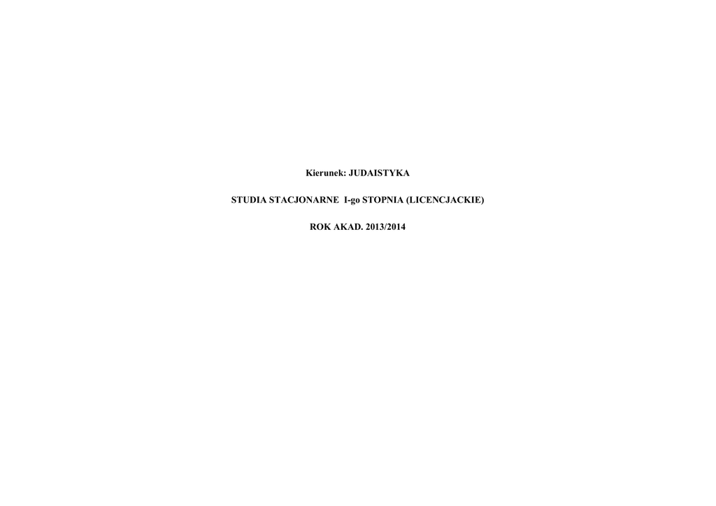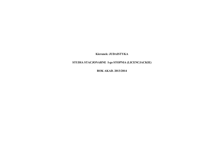 judaistyka - I stopień - plan studiów