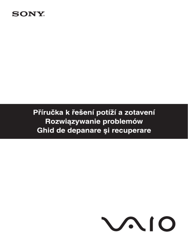 Contents Dokumentace ......................................................................9 Tištěná dokumentace ............................................................................ 9 Netištěná dokumentace......................................................................... 9 Důležité ................................................................................................. 9 Úvod k této příručce...........................................................10 Řešení potíží Řešení potíží......................................................................12 Počítač................................................................................................. 12 Co udělat, pokud se počítač nespouští?....................................... 12 Co udělat, když počítač při zapnutí zobrazí chybu systému BIOS?...................................................................... 13 Co udělat, pokud (zelená) kontrolka napájení svítí, ale displej je prázdný? ........................................................... 14 Co udělat, pokud počítač nebo software přestane reagovat?....... 14 Co udělat, pokud kontrolka akumulátoru bliká a počítač se nespouští?......................................................... 14 Co udělat, když počítač zobrazí zprávu o nekompatibilitě nebo nesprávném vložení akumulátoru a přejde do režimu spánku? ................................................................ 15 Co udělat, když spustím počítač, systém zobrazí zprávu a nespustí operační systém Windows? ..................... 15 Co udělat, pokud si nemohu vzpomenout na heslo systému BIOS? ....................................................... 15 Zabezpečení systému.......................................................................... 16 Jak mohu počítač chránit proti ohrožení bezpečnosti, například virům? .................................................................... 16 Jak mohu aktualizovat antivirový software?.................................. 16 3 Obnovení systému počítače VAIO Než začnete s počítačem pracovat................................... 18 Vytvoření vlastních disků pro obnovení................................................ 20 Vytváření disků pro obnovení ........................................................ 21 Zálohování a obnovování dat pomocí funkce Backup and Restore Center (Centrum zálohování a obnovení) ....................... 22 Zálohování dat............................................................................... 22 Vytvoření bodu obnovení .............................................................. 27 Zálohování a obnovování dat v softwaru VAIO .................................... 30 Zálohování dat softwarem Rescue Data (Záchrana dat) ....................................................................... 30 Obnovení dat softwarem VAIO Data Restore Tool (Nástroj pro obnovení dat VAIO)............................................ 32 Obnovení předinstalovaného softwaru nebo ovladačů ........................ 33 Práce s nástrojem Reinstall Programs or Drivers (Přeinstalování programů nebo ovladačů) ............................. 33 Zjištění postupu pro situace po poruše počítače............... 34 Pokud počítač nepracuje správně........................................................ 34 Pokud lze spustit systém Windows ............................................... 35 Pokud systém Windows nelze spustit ........................................... 36 Obnovení systému počítače VAIO .................................... 37 Před zahájením procesu obnovování................................................... 37 Obnovení systému VAIO, pokud lze spustit Windows ......................... 39 Obnovení jednotky C ..................................................................... 39 Obnovení celého systému počítače .............................................. 40 Obnovení systému VAIO, pokud nelze spustit Windows ..................... 41 Změna velikosti oddílů ...................................................... 42 Oddíly na pevném disku....................................................................... 42 Vytvoření oddílu na pevném disku ....................................................... 42 Vytvoření oddílu funkcí systému Windows .................................... 43 Vytvoření oddílu pomocí disků pro obnovení ................................ 43 Vymazání celého pevného disku ...................................... 44 Vymazání všech dat z pevného disku softwarem Wipe and Erase Data (Vymazání dat) .......................................... 44 4 Contents PL Dokumentacja....................................................................45 Dokumentacja w formie drukowanej.................................................... 45 Dokumentacja w formie elektronicznej ................................................ 45 Ważne ................................................................................................. 45 Wprowadzenie do podręcznika .........................................46 Rozwiązywanie problemów Rozwiązywanie problemów ...............................................48 Komputer ............................................................................................. 48 Co należy zrobić, jeśli komputer się nie uruchamia ...................... 48 Co należy zrobić, jeśli po włączeniu komputera pojawia się komunikat o błędzie BIOS-u ............................... 49 Co należy zrobić, jeśli wskaźnik zasilania świeci się na zielono, ale ekran jest pusty ............................................. 50 Co należy zrobić, jeśli komputer lub oprogramowanie przestają reagować ............................................................... 50 Co zrobić, jeśli wskaźnik akumulatora miga i ko