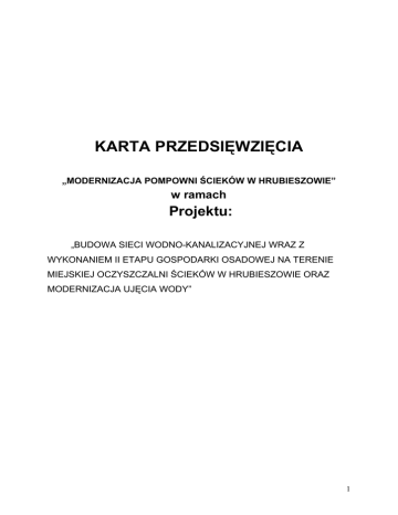 KARTA PRZEDSIĘWZIĘCIA „MODERNIZACJA POMPOWNI ŚCIEKÓW W HRUBIESZOWIE” w ramach Projektu: „BUDOWA SIECI WODNO-KANALIZACYJNEJ WRAZ Z WYKONANIEM II ETAPU GOSPODARKI OSADOWEJ NA TERENIE MIEJSKIEJ OCZYSZCZALNI ŚCIEKÓW W HRUBIESZOWIE ORAZ MODERNIZACJA UJĘCIA WODY” 1 SPIS TREŚCI 1. WSTĘP ........................................................................................................ 4 1.1 Przedmiot, zakres i cel opracowania .................................................................... 4 2. RODZAJ, SKALA I USYTUOWANIE PRZEDSIĘWZIĘCIA ........................ 5 2.1 Rodzaj i skala przedsięwzięcia .............................................................................. 5 3. OPIS ELEMENTÓW PRZYRODNICZYCH OBJĘTYCH ZAKRESEM PLANOWANEGO PRZEDSIĘWZIĘCIA .......................................................... 5 3.1. Położenie aglomeracji............................................................................................ 5 3.2 Warunki gruntowo - wodne................................................................................... 6 3.3. Warunki klimatyczne............................................................................................ 8 4. POWIERZCHNIA ZAJMOWANA NIERUCHOMOŚCI, A TAKŻE OBIEKTU BUDOWLANEGO ORAZ DOTYCHCZASOWY SPOSÓB ICH WYKORZYSTANIA I POKRYCIE SZATĄ ROŚLINNĄ ................................... 9 4.1 Pompownia ścieków przy ul. Ludnej .................................................................... 9 4. 2 Pompownia ścieków przy ul. Grunwaldzkiej.................................................... 10 5. OPIS STANU ISTNIEJĄCEGO ................................................................. 10 5.1 Pompownia ścieków przy ul. Ludnej .................................................................. 10 5.2 Pompownia ścieków przy ul. Grunwaldzkiej..................................................... 11 6. CHARAKTERYSTYKA PLANOWANEGO PRZEDSIĘWZIĘCIA .............. 12 6.1 Modernizacja pompowni Ludna ......................................................................... 13 6.2 Modernizacja pompowni „Grunwaldzka”......................................................... 14 7. WARIANTY PRZEDSIĘWZIĘCIA.............................................................. 15 7.1. Wariant niepodejmowania przedsięwzięcia...................................................... 15 7.2. Wariant najkorzystniejszy dla środowiska ....................................................... 15 8. PRZEWIDYWANA ILOŚĆ WYKORZYSTYWANEJ WODY I INNYCH WYKORZYSTYWANYCH SUROWCÓW, MATERIAŁÓW, PALIW ORAZ ENERGII ........................................................................................................ 16 9. ROZWIĄZANIA CHRONIĄCE ŚRODOWISKO....................................... 16 10. RODZAJE I PRZEWIDYWANE ILOŚCI WPROWADZANYCH DO ŚRODOWISKA SUBSTANCJI LUB ENERGII PRZY ZASTOSOWANIU ROZWIĄZAŃ CHRONIĄCYCH ŚRODOWISKO. .......................................... 18 10.1 Realizacja robót .................................................................................................. 18 10.2 Eksploatacja obiektów ....................................................................................... 19 11. MOŻLIWE TRANSGRANICZNE ODDZIAŁYWANIE NA ŚRODOWISKO ....................................................................................................................... 19 2 12. OBSZARY PODLEGAJĄCE OCHRONIE NA PODSTAWIE USTAWY Z DN.16 KWIETNIA 2004 R. O OCHRONIE PRZYRODY ZNAJDUJĄCE SIĘ W ZASIĘGU ZNACZĄCEGO ODDZIAŁYWANIA PRZEDSIĘWZIĘCIA............ 20 12.1 Obszary i obiekty chronione.............................................................................. 20 12.2. Obszary NATURA 2000.................................................................................... 21 12.3 Obiekty wpisane do rejestru zabytków ............................................................ 24 3 1. WSTĘP 1.1 Przedmiot, zakres i cel opracowania Uporządkowanie Hrubieszów, gospodarki wodno-ściekowej na terenie aglomeracji a także konieczność dostosowania do wymagań Unii Europejskiej i spełnienia współczesnych wymagań prawa polskiego w zakresie gospodarki wodnej, ściekowej i osadowej są głównym celem niniejszego projektu. Planowane Przedsięwzięcie wpisuje się w realizację I osi priorytetowej: Działanie 1.1 Gospodarka wodno-ściekowa w aglomeracjach powyżej 15 000 RLM. Z uwagi na brak możliwości sfinansowania planowanej inwestycji ze środków własnych Inwestor – Przedsiębiorstwo Gospodarki Komunalnej i Mieszkaniowej Sp. z o.o. w Hrubieszowie ul. Krucza 20, zajmujące się także eksploatacją obiektów stanowiących przedmiot przedsięwzięcia zamierza wykonać niezbędne prace, ubiegając się o dofinansowanie ze środków Unii Europejskiej. Przedmiotem niniejszego opracowania, które powstało w ramach postępowania w sprawie oceny oddziaływania na środowisko jest przedstawienie organom decyzyjnym szczegółowych informacji o wpływie na środowisko planowanej inwestycji p.n. „Modernizacja pompowni ścieków w Hrubieszowie” - zadanie realizowane wg żółtego FIDIC. Podstawą opracowania Karty przedsięwzięcia jest Ustawa z dn. 03.10.2008 r. o udostępnianiu informacji o środowisku i jego ochronie, udziale społeczeństwa w ochronie środowiska oraz o ocenach oddziaływania na środowisko (Dz. U. 2008 nr 199 poz. 1227), ustawa z dnia 27.04.2001 r. Prawo ochrony środowiska (art.52 ust.1 – Dz. U. nr 62, poz.627) z późn. zm. oraz Rozporządzenie Rady Ministrów z dnia 9 listopada 2004 r. ( z późn. zm.) w sprawie określenia rodzajów przedsięwzięć mogących znacząco oddziaływać na środowisko oraz szczegółowych uwarunkowań związanych z kwalifikowaniem przedsięwzięć do sporządzenia raportu o oddziaływaniu na środowisko (Dz. U. Nr 257, poz. 2573, Dz. U. Nr 92, poz. 769, 2005 r. i Dz. U. Nr 158, poz. 1105, 2007 r.). Źródła stanowiące podstawę do sporządze