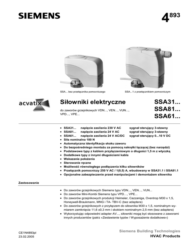 4893 Siłowniki elektryczne SSA31... SSA81... SSA61