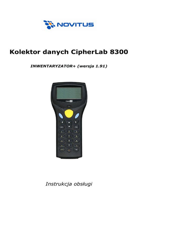 Kolektor danych CipherLab 8300 INWENTARYZATOR+ (wersja 1.91) Instrukcja obsługi Nowy Sącz, maj 2007 Spis Treści 1. WSTĘP ............................................................... 5 2. PARAMETRY TECHNICZNE ................................. 6 3. OBSŁUGA URZĄDZENIA ..................................... 9 3.1. Funkcje klawiszy ................................................... 9 3.2. Transmisja danych .............................................. 10 4. STRUKTURA OPROGRAMOWANIA .................... 11 4.1. 4.2. 4.3. 4.4. Kernel ............................................................... 11 MenedŜer programów .......................................... 12 System.............................................................. 13 Program uŜytkownika .......................................... 16 5. PROGRAM „INWENTARYZATOR+” ................... 17 5.1. Menu programu .................................................. 17 5.2. Przesyłanie danych do/z komputera PC.................. 22 5.3. Instalacja programu w kolektorze. ........................ 22 6. ROZWIĄZYWANIE PROBLEMÓW ...................... 23 7. NOTATKI ......................................................... 25 Kolektor danych CipherLab 8300 - Instrukcja obsługi 1. WSTĘP Kolektory danych CipherLab 8300 to niewielkie, lekkie, ale bardzo wydajne urządzenia przeznaczone do wielogodzinnej, codziennej pracy. Do kolektorów dostępny jest bogaty zestaw narzędzi programistycznych tj. pracujący w środowisku Windows „Generator Aplikacji”, kompilatory „C” i „Basic”. Dzięki wbudowanemu czytnikowi kodów kreskowych (CCD lub laser), kolektory te są idealnym rozwiązaniem dla przeprowadzania inwentaryzacji, sprzedaŜy hurtowej, kontroli obiegu towarów na magazynie, itp. Ekran LCD pracujący w trybie graficznym jest łatwo czytelny bez względu na oświetlenie zewnętrzne. Istnieje moŜliwość regulacji kontrastu jak i włączenia podświetlenia (podświetlana jest równieŜ klawiatura). Kolektor zasilany jest z akumulatora Li-Ion, który umoŜliwia pracę kolektora przez ok. 100 godzin (bez ładowania). 5 Kolektor danych CipherLab 8300 - Instrukcja obsługi 2. PARAMETRY TECHNICZNE Jednostka centralna (CPU) Typ Toshiba 16-bit CPU Częstotliwość zegara Technologia Maksymalnie 22MHz (moŜliwość programowej zmiany) CMOS o niskim poborze mocy Pamięć Pamięć programu Pamięć danych (z podtrzymaniem bateryjnym) 1 lub 2MB pamięci Flash 2 lub 8MB pamięci SRAM Czytnik kodów kreskowych Typ CCD Laser Źródło światła diody LED dioda laserowa 670nm Rozdzielczość 0,125 – 1,0mm Minimalny kontrast kodu Szybkość skanowania - 20% 100 skanów/s 36±3 skanów/s 2 – 20 cm 5 – 95 cm Głębokość pola odczytu (w zaleŜności od rozdzielczości kodu kreskowego) Szerokość pola odczytu (w zaleŜności od odległości do kodu kreskowego) 4,5 – 12,4 cm - Wyświetlacz Typ LCD-FSTN 128x64 pkt. Z podświetlaniem LED Wyświetlane znaki alfanumeryczne (moŜliwość wykorzystania znaków narodowych), symbol rozładowanej baterii, wskaźnik trybu alfanumerycznego 6 Kolektor danych CipherLab 8300 - Instrukcja obsługi Klawiatura gumowa; numeryczna (24 klawisze) lub alfanumeryczna (39 klawiszy) Typ Sygnalizacja Akustyczna brzęczyk (programowalna funkcja i częstotliwość dźwięku z zakresu (1 – 4 kHz) Optyczna dwukolorowa dioda LED (programowalna funkcja) Interfejsy komunikacyjne RS232 Serial_IR Standard IrDA 1.0 transmisja przez kabel lub dok (maks. 115200 bps) transmisja na podczerwień (maks. 115200 bps) transmisja na podczerwień (maks. 115200 bps) Parametry elektryczne Zasilanie główne akumulator Li-Ion 3,7V 700mAh Bateria podtrzymująca akumulator 3.0 V, 7,0 mAh (ang. backup) ok. 100 godzin Czas pracy na (w pełni) naładowanym akumulatorze (przy załoŜeniach: CPU w trybie małej szybkości, jeden odczyt kodu kreskowego na 5 s) 7 Kolektor danych CipherLab 8300 - Instrukcja obsługi Parametry środowiskowe Wilgotność powietrza (podczas pracy) 10 – 90 %, bez kondensacji pary wodnej Wilgotność powietrza (podczas składowania) 5 – 95 %, bez kondensacji pary wodnej Temperatura zewnętrzna (podczas pracy) -20 – 60 °C Temperatura zewnętrzna (podczas składowania) -30 – 70 °C Odporność na upadek z 1,2m na beton IP IP65 Parametry fizyczne Wymiary (dł. x szer. x wys.) 169 x 77 x 36 mm Masa 230g (łącznie z akumulatorem) Obudowa czarny ABS Certyfikaty FCC class A, CE, C-Tick 8 Kolektor danych CipherLab 8300 - Instrukcja obsługi 3. OBSŁUGA URZĄDZENIA Przed rozpoczęciem pracy z kolektorem naleŜy zainstalować w nim akumulator oraz go naładować, pozostawiając kolektor w doku/ładowarce na kilkanaście godzin. 3.1. Funkcje klawiszy Klawiatura kolektora CipherLab 8300 zawiera (w zaleŜności od wersji) 24 lub 39 gumowych klawiszy (w tym przycisk wyzwalania skanera kodów kreskowych). Funkcje klawiszy specjalnych są następujące: Klawisz Funkcja Ŝółty klawisz Naciśnięcie tego przycisku spowoduje uruchomienie skanera (pod warunkiem, Ŝe skaner został wcześniej uaktywniony przez program!) niebieskie klawisze SłuŜą do „zatwierdzania” wprowadzonych danych (klawisze Enter) BS (BackSpace) Kasowanie ostatnio znaku z klawiatury ALPHA W normalnym trybie pracy, z klawiatury kolektora moŜna wprowadzać jedynie cyfry. By moŜliwe było wprowadzanie liter, naleŜy przełączyć kolektor w tryb alfanumeryczny naciskając klawisz ALPHA (na wyświetlaczu, przy prawej krawędzi, pojawi się symbol A). Wówczas, chcąc wprowadzić, znak dodatkowy, naleŜy dany klawisz nacisnąć odpowiednią ilość razy (w krótkim czasie!) Ponowne naciśnięcie ALPHA wyłącza tryb alfanumeryczny (Literka A znika z ekranu). wprowadzonego 9 Kolektor danych CipherLab 8300 - Instrukcja obsługi W powiązaniu z klawiszami od 1 do 9 działa jako klawisz funkcyjny (FN1 – FN9). FN Dodatkowo za pomocą tego klawisza i klawiszy strzałek moŜna regulować kontrast ekranu LCD, natomiast FN w powiązaniu z klawiszem