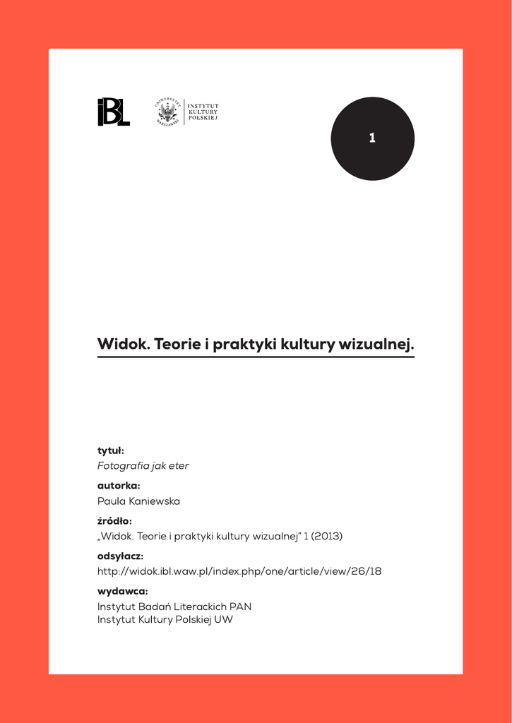 Pobierz plik PDF - Widok. Teorie i praktyki kultury wizualnej