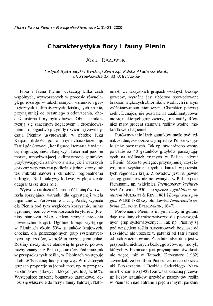 Razowski J - Charakterystyka flory i fauny Pienin