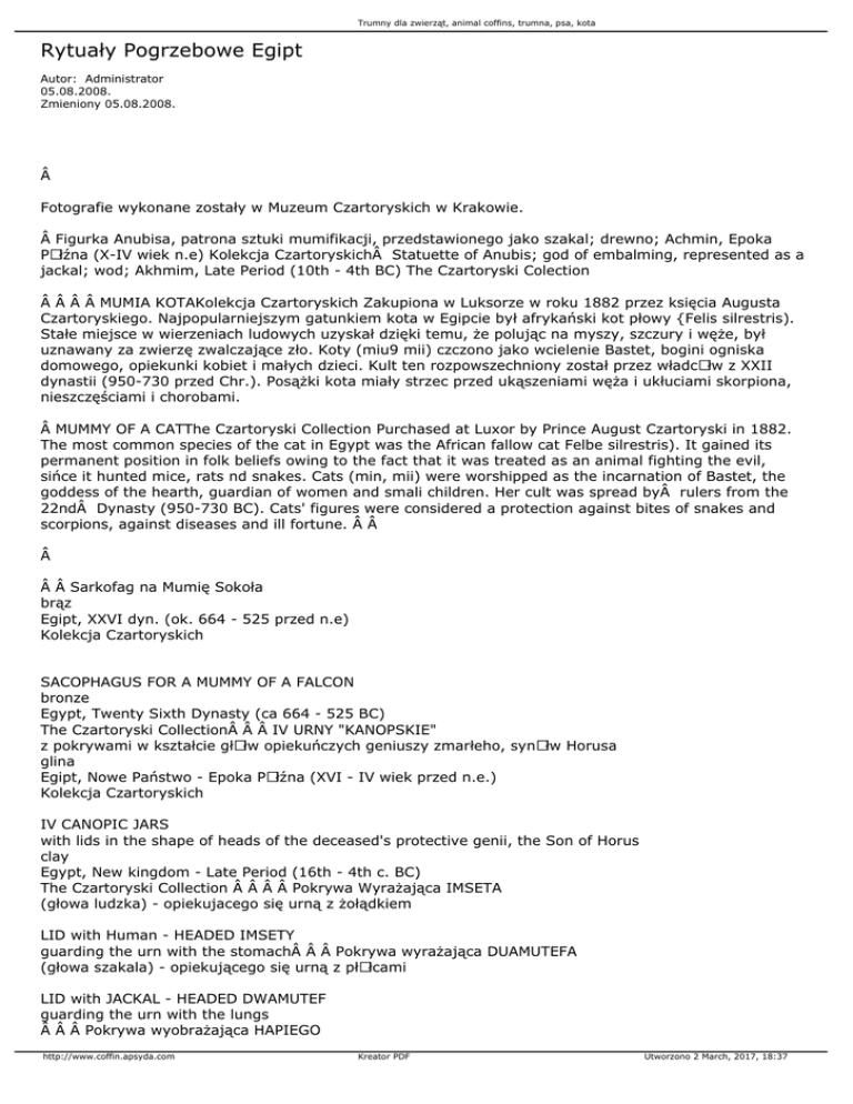 MUMIA KOTAKolekcja Czartoryskich Zakupiona w Luksorze w roku 1882 przez księcia Augusta
