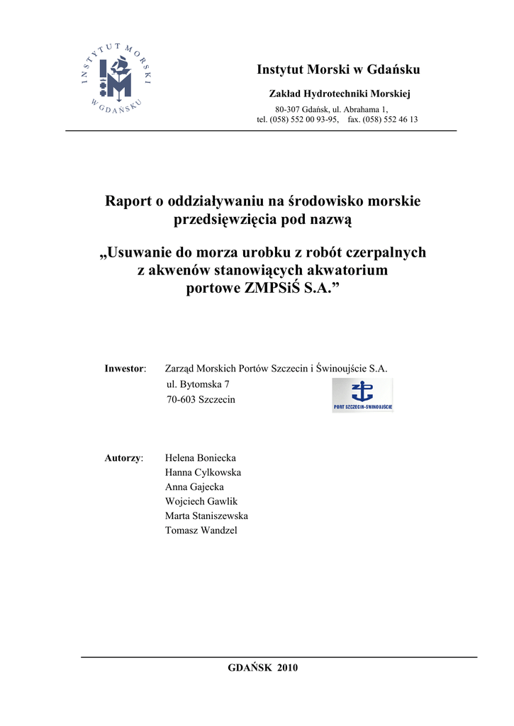 Raport o oddziaływaniu przedsięwzięcia usuwania do morza urobku