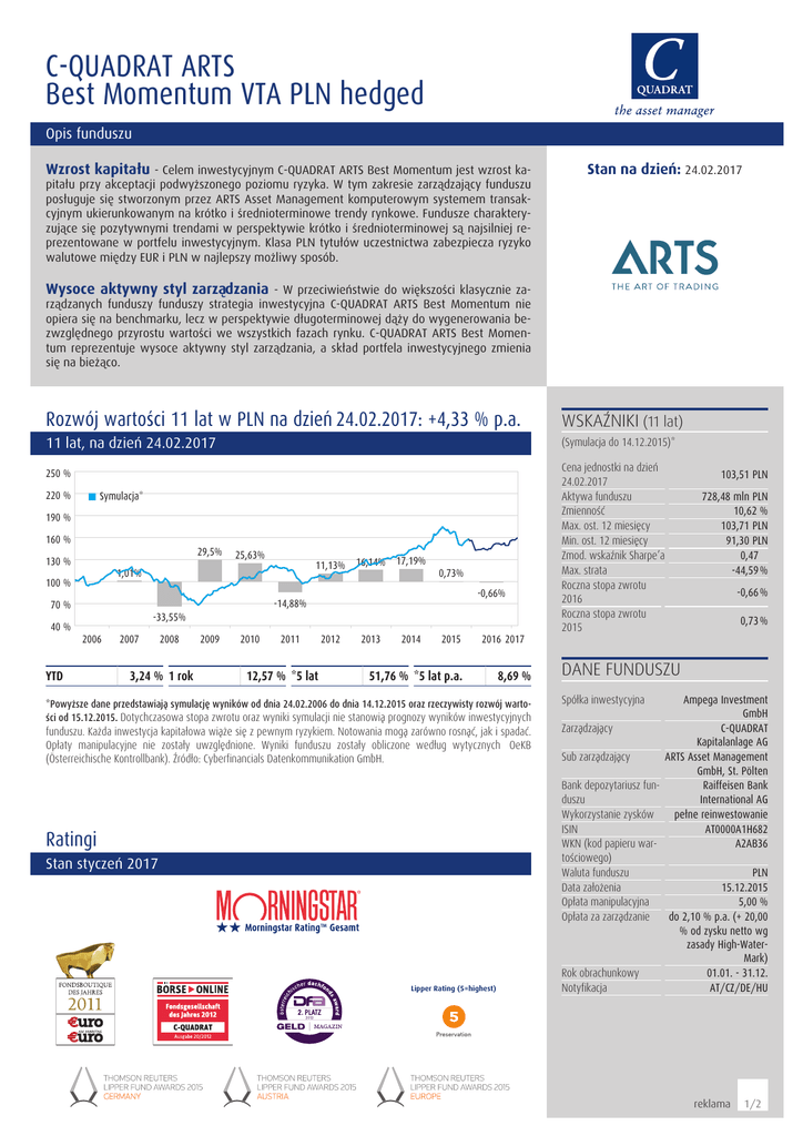 opiera się na benchmarku, lecz w perspektywie długoterminowej dąży do wygenerowania bezwzględnego przyrostu wartości we wszystkich fazach rynku. C-QUADRAT ARTS Best Momentum reprezentuje wysoce aktywny styl zarządzania, a skład portfela inwestycyjnego zmienia