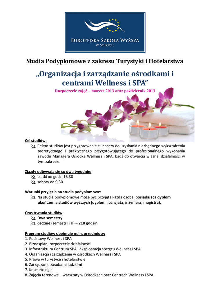 „Organizacja i zarządzanie ośrodkami i centrami Wellness i SPA”